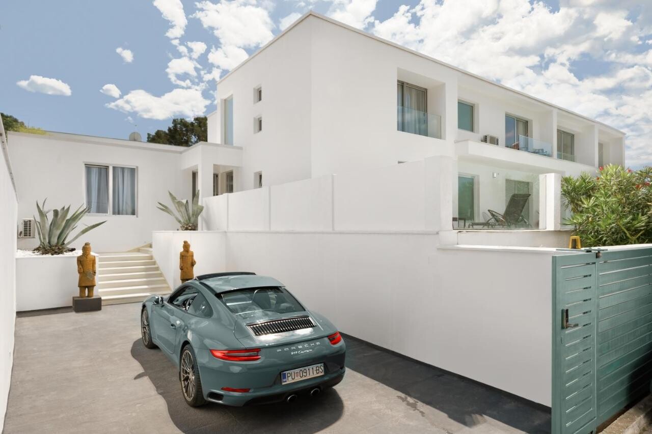 La hermosa Residencia Monvidal, ubicada en las inmediaciones de la ciudad de Pula, es famosa por ser un verdadero oasis de paz en el sur de Istria. Además del diseño arquitectónico con énfasis en la blancura, esconde un relajante jardín con un toque zen. Los huéspedes pueden así relajarse a la sombra de la vegetación mediterránea, en cómodos sofás blancos o junto a la superficie reluciente de la piscina, donde también podrán refrescarse en los calurosos días de verano.