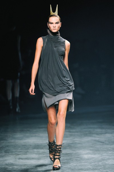 El diseñador californiano Rick Owens es considerado un creador menos conocido en nuestro país, pero por su estética especial merece tanta atención como, por ejemplo, Karl Lagerfeld, si no más. Bueno, no tiene mucho en común con Lagerfeld, pero podría ubicarse en su categoría de genio. Hace poco más de un año, sus chaquetas asimétricas volvieron loco al mundo por completo y, desde entonces, sus creaciones también están disponibles aquí. Inicialmente sólo una colección para hombres, pero ahora también una colección para mujeres. Su último trabajo, llamado Anthem, presenta cortes largos y capas en tonos grises, negros y marrones oscuros. Incluso en primavera y verano, Rick Owens permanece oscuro. Sus modelos caminan entre nubes de humo y marchan al ritmo de la música de percusión. Están vestidas con abrigos alargados sin cuello, chalecos de jersey drapeados, accesorios de cuero, pantalones futuristas y botas de cuero con tacón. La mezcla de crudo y acabado es perfecta.