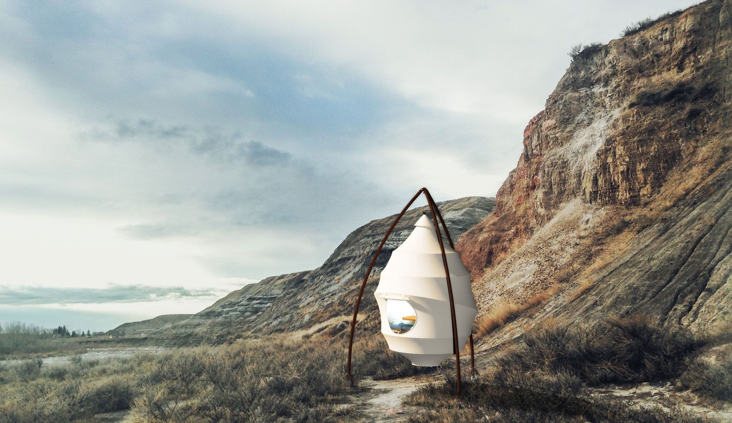La forma de la estructura fue crucial para el equipo: la forma natural de la semilla es aerodinámica en sí misma. Y cuando un equipo de ingenieros probó la estructura con un modelo de viento por computadora, se encontró que los anillos estructurales más pequeños combinados con una nueva generación de tejido arquitectónico podían capullo sobrevivir a vientos de 120 km/h, por lo que los huéspedes están seguros incluso cuando hay una tormenta. Otra consideración crítica para el equipo fue la instalación: querían poder instalar el capullo de forma rápida y silenciosa en pedestales en ubicaciones remotas sin el uso de maquinaria pesada o herramientas eléctricas, lo que reduciría los costos. Por lo tanto, crearon un sistema que se puede instalar en casi cualquier terreno simplemente con la ayuda de un par de manos extra, En un día, y puede permanecer allí durante al menos una década.