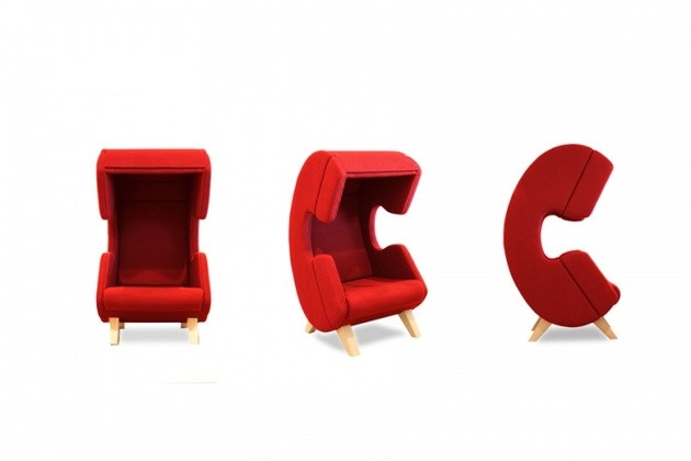 El sillón FirstCall, con forma de auricular de teléfono, ofrece una sensación de intimidad, un rincón cómodo para una llamada telefónica privada.