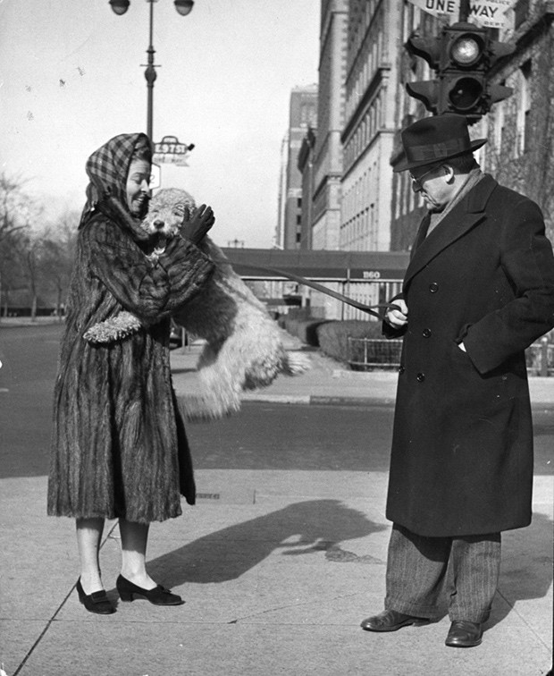 Nina Leen, fotografinja pri newyorškem časopisu VIDA, je v 40-ih prejšnjega stoletja v svoj objektiv – poleg ostalega zanimivega dogajanja v mestu – rada lovila igralce, pevce, pisatelje in ostale umetnike, ki so se po ulicah New Yorka sprehajali v spremstvu svojih domačih ljubljenčkov. Prisrčno serijo fotografij z naslovom “City Dogs”, ki prikazuje prebivalce Velikega Jabolka v spremstvu svojih najboljših prijateljev, si lahko v celoti ogledamo v newyorški galeriji Daniel Cooney Fine Art do 16. maja.