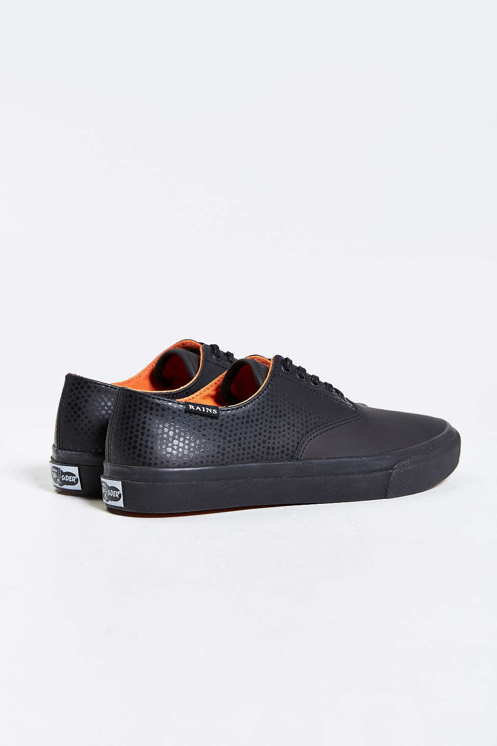 Sperry y Rains– prva je znamka obutve, ki izdeluje klasične mornarske čevlje in druga, ki se specializira za vodoodporna oblačila– sta spackala dva modela elegantnih nepremočljivih čevljev za dež, ki to jesen ne smejo manjkati v tvojo garderobi. To so ali izključno moški čevlji Bungee 2-Eye, nepremočljiva verzija klasičnih mornarskih čevljev, ali superge Cloud CVO. Obe obutvi imata vodoodporno gumijasto membrano, stranski usnjeni del pa potiskan z vzorcem pitona. Vezalke pri supergah so povoskane, pri mornarskih čevljih pa elastične (zavezovanje ni potrebno).