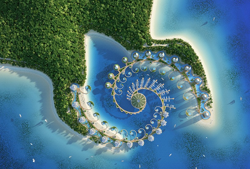 Arhitekt je navdih črpal iz biomimetike, vede, ki se ukvarja s posnemanjem narave in njenih modelov, ter znanstvenih dognanj na temo varovanja okolja. Projekt naj bi gradili zgolj z recikliranimi materiali, bo pa tudi samooskrben in samozadosten. Množično financiranje (recaudación de fondos) bi uporabili z namenom ohranjanja kakovosti, tako da podpora lokalnemu okolju in ljudem v obliki prihodkov in služb nikoli ne bi trpela. Ideja je tudi, da bi eko turisti prostovoljno čistili tamkajšnje plaže. Resort ima dve glavni entiteti, a saber hotele v obliki školjke in polžev y centro, ki stoji na sredini kompleksa, kjer sta tudi navtični center ter znanstveni laboratorij. Na vzhodni strani kompleksa se bohoti 12 spiralnih stolpov različnih višin, v katerih so stanovanja in ki se girar alrededor de su eje, tako da lovijo sonce. Tako boste imate vsako uro v dnevu lahko drugačen razgled. Hoteli v obliki polža pa se nahajajo na zahodni strani kompleksa.