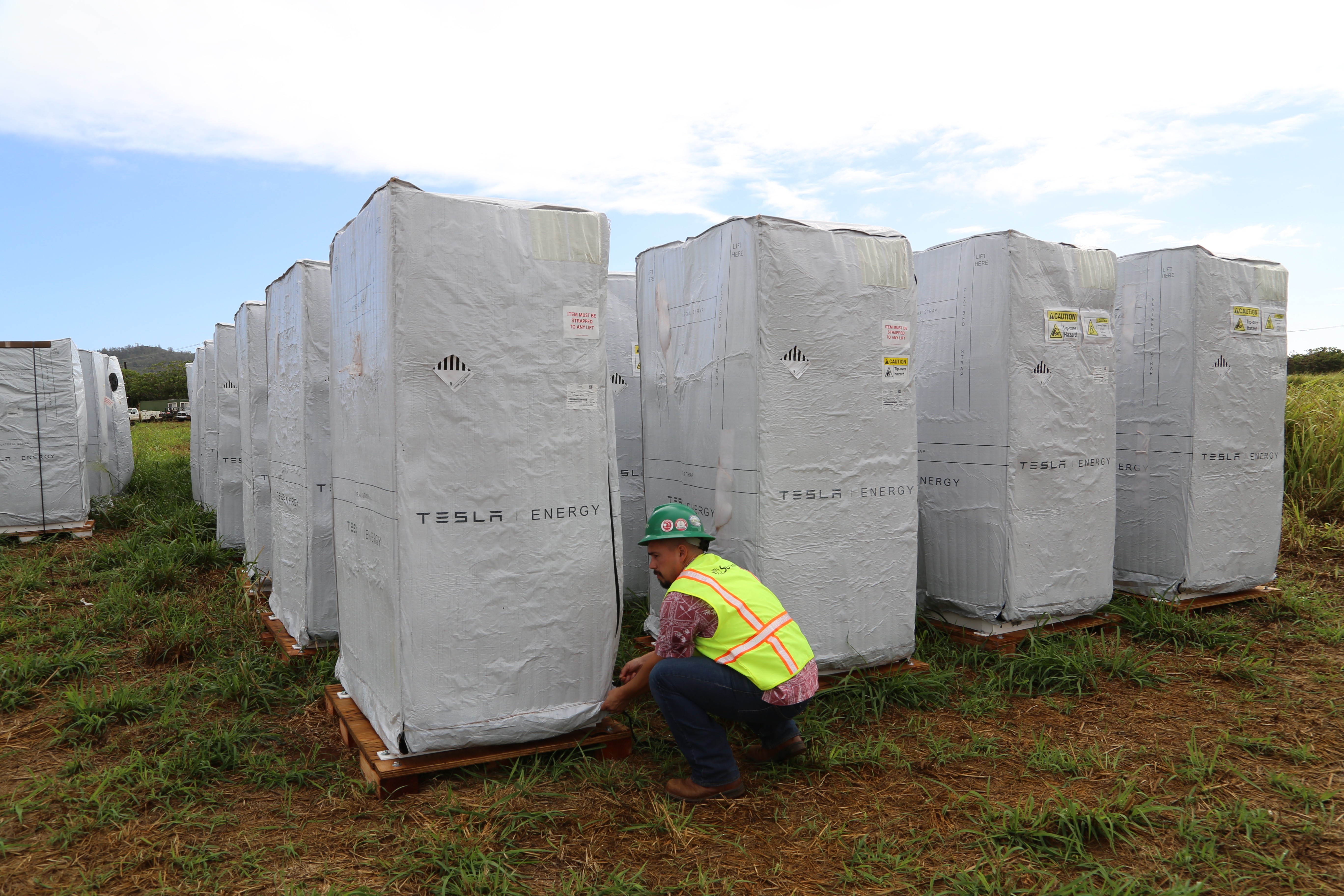tesla ha abierto en el estado estadounidense de California la estación de baterías para almacenamiento de electricidad más grande del mundo. Un sitio solar en la isla de Kauai tiene capacidad 13 megavatios, pero lo forma 54.978 paneles solares y una estación de batería "pesada" de 52 megavatios-hora de 272 estaciones de almacenamiento.
