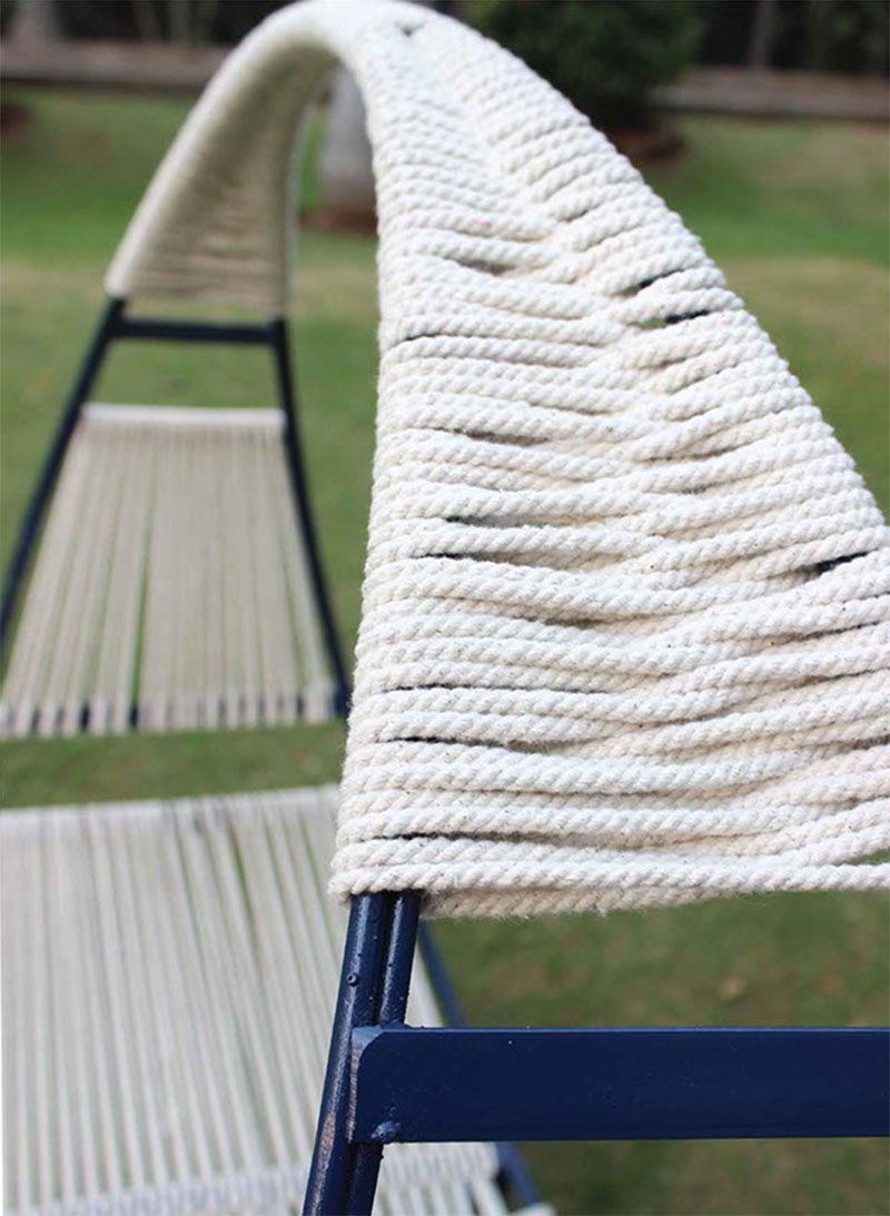 Al trío se le ocurrió la idea de combinar un columpio y una hamaca. Curvo Marco de metal, tejido de trilobite y sarga., y la silla inusual estaba aquí. Esperemos que los "scouts" de los gigantes del mueble estén atentos para que pronto podamos idear algo así para nuestra propia casa. casa o para nosotros jardín.