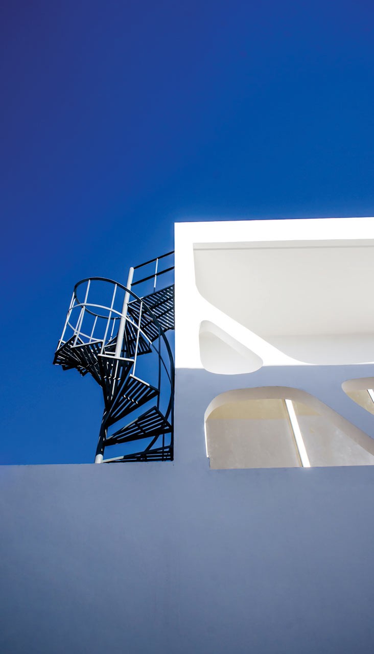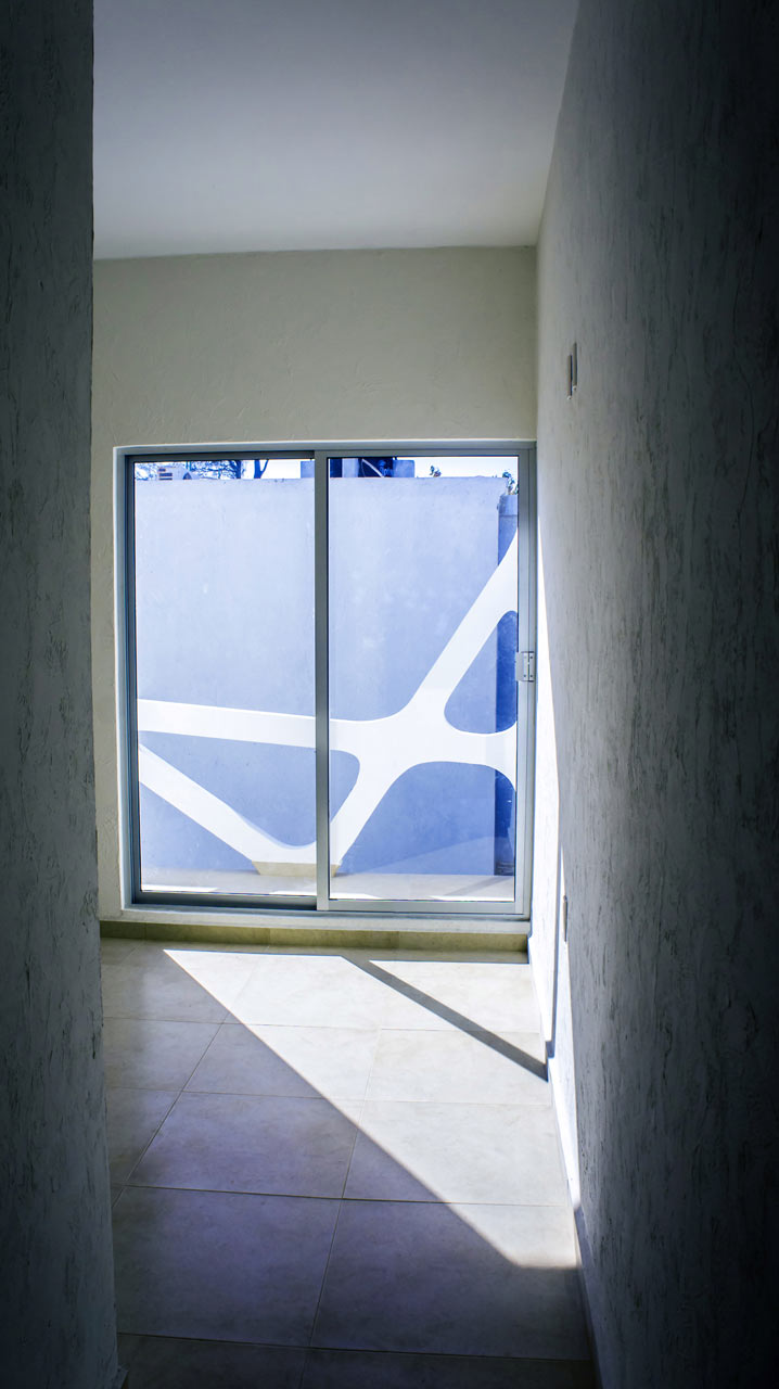 La casa destaca de su entorno precisamente por su increíble fachada, revestida en la primera planta por una estructura blanca que imita el encaje. La malla blanca sirve como barandilla del balcón, pero también como pantalla, protegiendo a los residentes de las vistas indeseadas desde la calle. Enmarca de forma interesante las vistas desde las habitaciones de los niños y proporciona una experiencia de vida completamente segura para ellos.