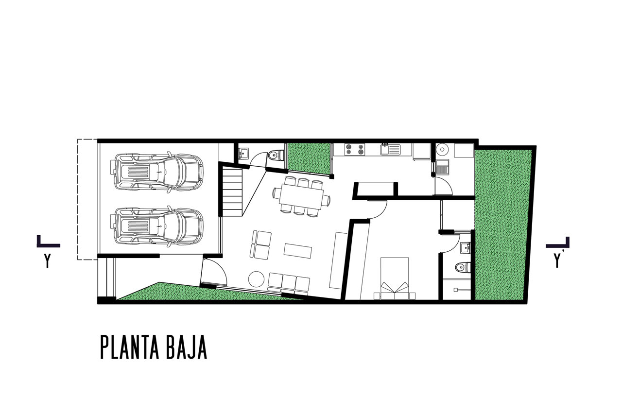 En la planta baja del edificio, desde la calle hacia el interior, el garaje, el recibidor, la sala de estar y el comedor se suceden para mayor privacidad. A continuación, se encuentran la cocina y el dormitorio de los padres, que dan al patio interior. La fachada de la planta baja carece de interés y solo refleja... Función de protección del interior del edificio.En cambio, la planta superior del edificio está destinada a habitaciones infantiles, es completamente privada y tiene una fachada interesantemente decorada.