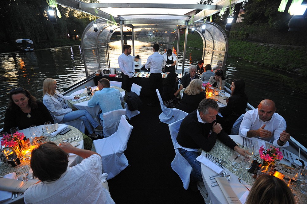 Los mimos culinarios en el barco se pueden dar como regalo a aniversario de boda o cumpleaños, participar de una manera ligeramente diferente almuerzo de negocios o solo Vive Ljubljana desde una perspectiva diferente – del río de los siete nombres, el río Ljubljanica.