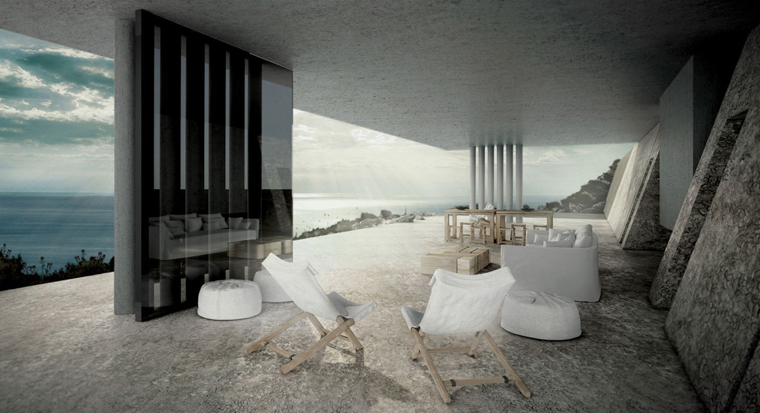 Una residencia isleña de lujo en una isla griega tinos Se integra perfectamente con su entorno y proporciona total paz y tranquilidad. Cliente en un estudio de arquitectura Kois Arquitectos Asociados exigió que se tuviera en cuenta el deseo de total secreto durante la construcción de la prestigiosa residencia. Ya al planificar la construcción, los arquitectos prestaron atención al hecho de que la villa Mirage se integrara en el entorno. Las dos plantas del edificio se prolongan así en el terreno, que se abre a una hermosa terraza con una maravillosa vista al mar.