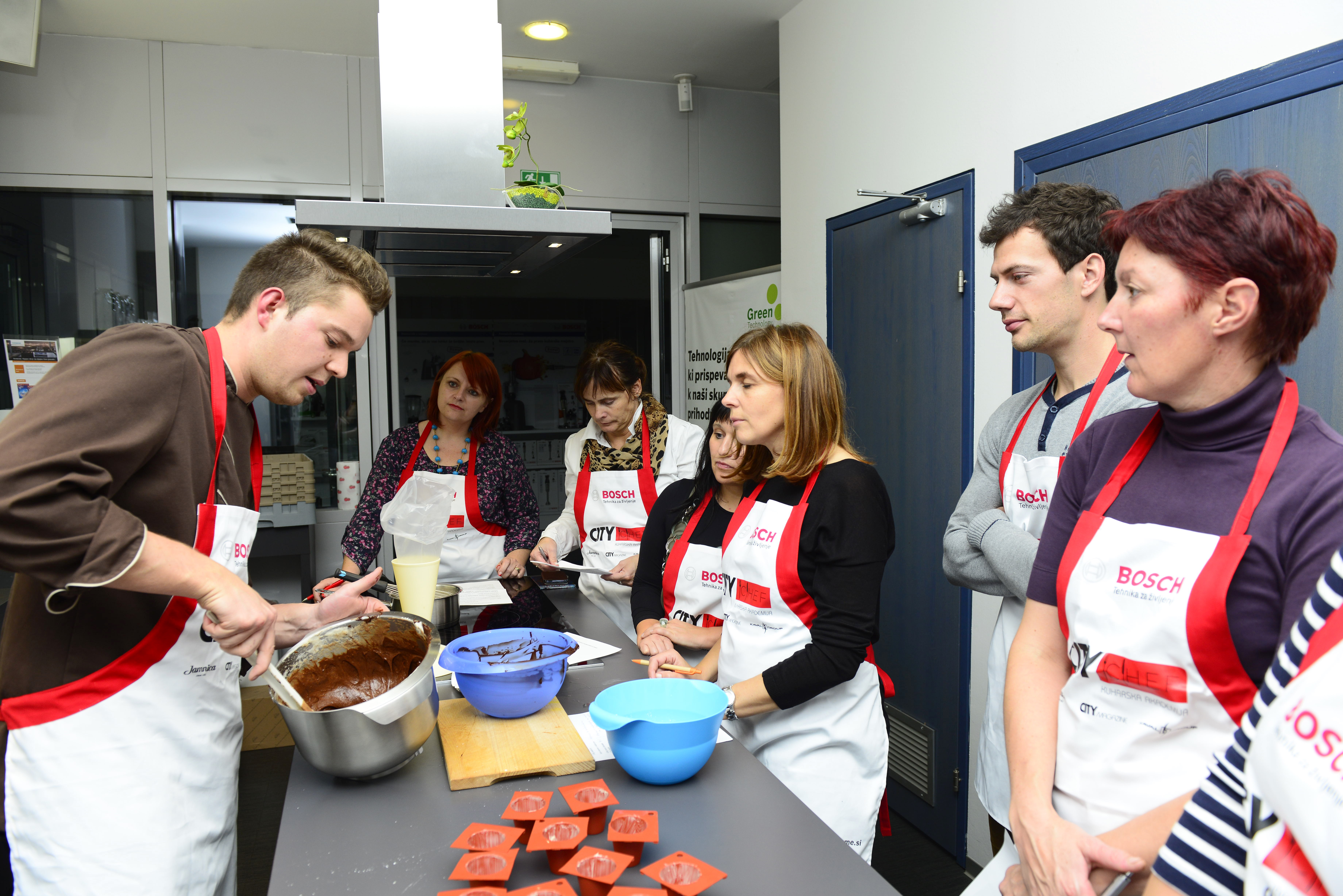 En este caso Academia de cocina CITY CHEF so naše krožnike napolnile jesenske dobrote – kostanj, gobe in sveži pridelki z domačega vrta. Glavne jedi je pripravljal chef de Kaval Inn and Pizzeria, Dragan Marjanović, y se encargó de los postres pastelero de Lolita, Greg Roda. Pod njunim budnim očesom smo pripravili bučno juho, jedli kostanjeve njoke z jurčki, ravijole polnjene z bučkami in riccoto, s tartufato in gamberi ter lisičkami. Za sladico ni manjkal božanski čokoladni suffle s kostanjevo peno in slastni mille feullie.