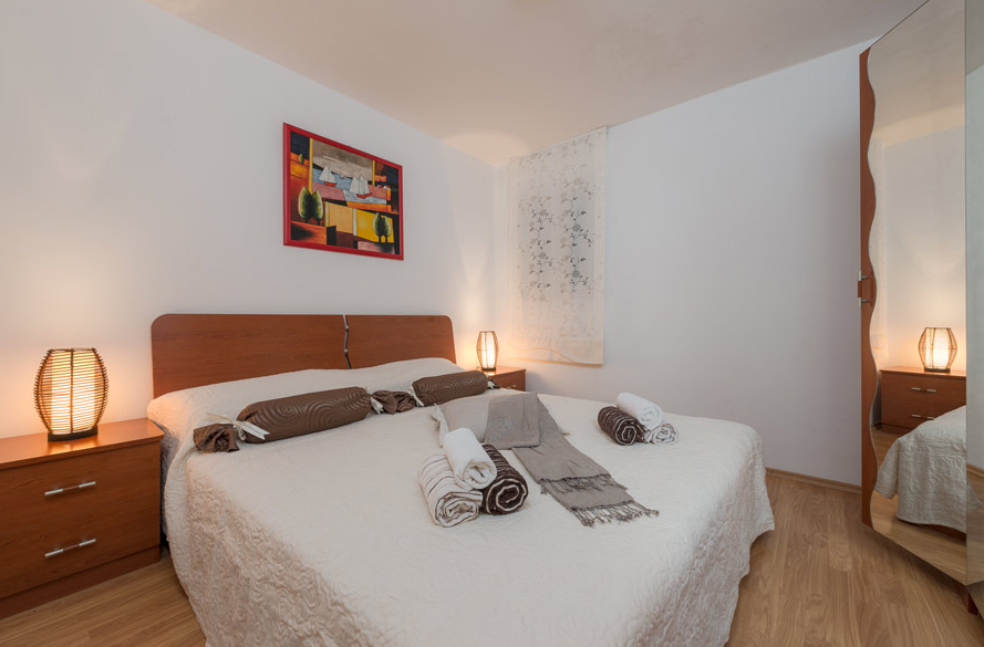 Debido a su ubicación excepcional y su confortable interior en Villa Zlatni Rata reina idílicamente atmósfera, perfecto para pasar unas vacaciones de verano sin preocupaciones. Villa Zlatni Rata encontrado en Dolor en Brač, más precisamente en las inmediaciones las playas mas hermosas en la isla, playas La guerra de oro. La lujosa residencia dálmata, que también se puede alquilar, fascina por su estilo tradicional mediterráneo y su extraordinaria interior domestico, pero también impresiona con una excepcional terraza, jardín, vegetación mediterránea y una gran piscina al aire libre. La lujosa Villa Zlatni rat tiene tres dormitorios, dos baños y una gran sala de estar y es adecuada para alojamiento para seis personas.