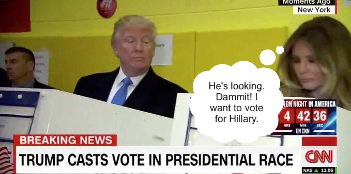 "¡No confíes en nadie, ni siquiera en tu propia esposa!", probablemente pensó Donald Trump después de llenar su boleta y esperar a que su esposa Melania Trump emitiera su voto. Miró descaradamente a su esposa con los ojos entrecerrados y esperó que nadie se diera cuenta de él, pero las cámaras, penetrantes por todos lados, lo captaron mirando a su vecino al estilo de los profesores más atentos. Hasta aquí la libre elección de la familia Trump, que se espera que llegue a la Casa Blanca si el magnate inmobiliario derrota en las elecciones a Hillary Clinton, que se convertiría en la primera presidenta estadounidense de la historia.