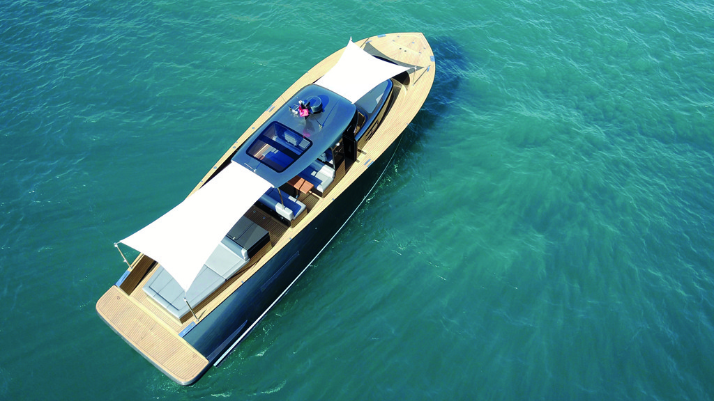 El frente del yate se eleva abruptamente fuera del agua y parece bastante alto. Como resultado, también es más fácil tratar con olas más grandes y por lo tanto es más rápido incluso en peores condiciones de navegación. El casco tiene una forma de V alta, y alrededor de la proa está borde de madera, que actúa como una especie de pasarela estrecha. La cabina no es demasiado grande y también está en estilo minimalista, pero todavía hay suficiente espacio para un dormitorio cómodo y un baño lo suficientemente grande. En el momento de la compra, el futuro propietario puede decidirse cualquier color de cuerpo, y todas las demás superficies están disponibles en cualquier madera. Dos cuidar de la unidad motor volvo IPS 600, y con su ayuda el yate alcanza la velocidad máxima 38 de nudos Hay suficiente combustible a bordo para 300 millas náuticas.