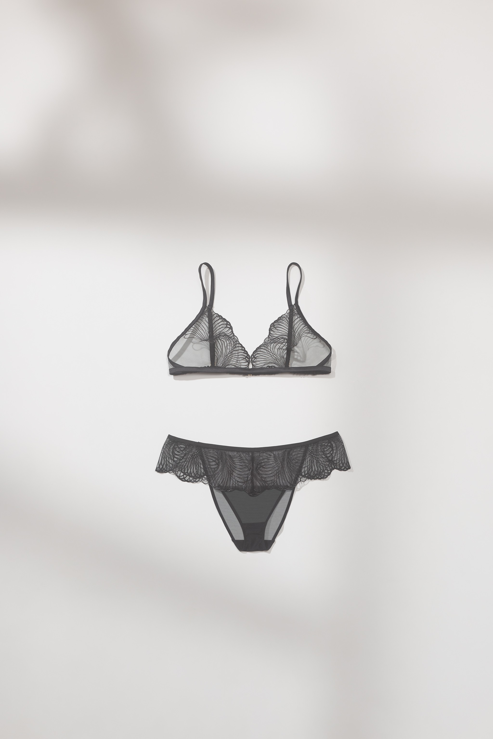 La nueva colección de la marca de moda española consta de 158 piezas de ropa interior y de tiempo libre, desde sujetadores y bragas a juego divinos, prendas de punto acogedoras y tops para todos los días, hasta pijamas. estas piezas de cachemira, seda y algodón incluir suavemente cordón, las siluetas son simples, accesorios tila y darles una nota especial y elegante.