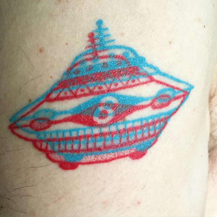 Rdeče-modri tatuji, ki dobesedno izstopajo, so delo ameriškega tetoverja iz Portlanda z vzdevkom Winston the Whale. Za svoje tetovaže uporablja anaglifno metodo, zato kombinira zamaknjene modre in rdeče črte. A tatuji ne izstopajo zato, izstopajo (in to dobesedno) šele, ko si nadenete posebna 3D-očala. Par kartonastih se gotovo valja v kakšnem predalu. Le brž po njih, da si lahko te 3D-tatuje ogledate v vsej njihovi veličini.