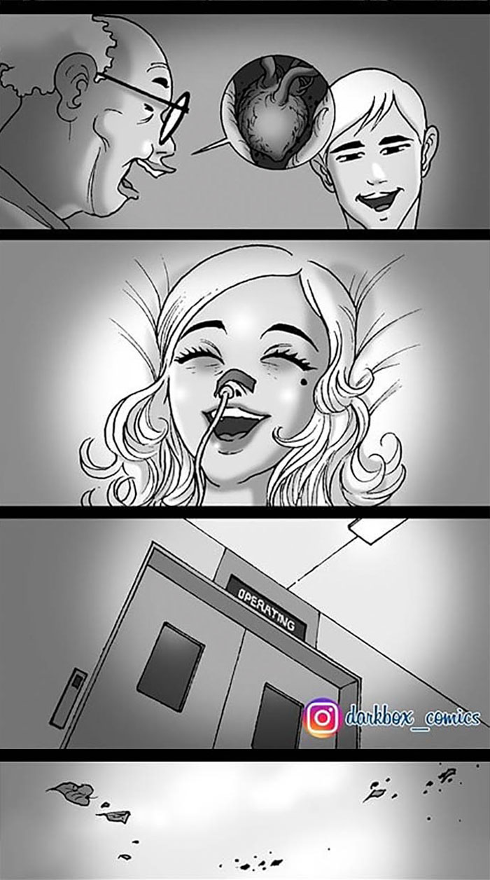Malesialainen taiteilija Pimeä laatikko erikoistunut piirtämään mykkiä kauhutarinoita. Se on kuvasarja, joka muodostaa täydellisen kertomuksen täysin ilman sanoja tai dialogia. Alta näet 7 pelottavaa mykkää tarinaa, jotka säikäyttävät sinut kuoliaaksi.