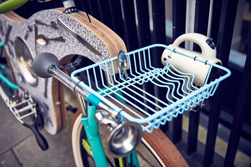 Klassisen ohjauspyörän sijaan he käyttivät tätä tapaa rulla, pinnojen sijaan ovat täällä paniikkeja, leivänpaahtimen istuimen sijaan runko on koristeltu haarukat, lusikat, veitset ja pesuallas, jopa polkimet ovat hyvin erikoisia. Se pitäisi tehdä alkaen 74 keittiövälinettä, yhteensä n. 300 euroa.