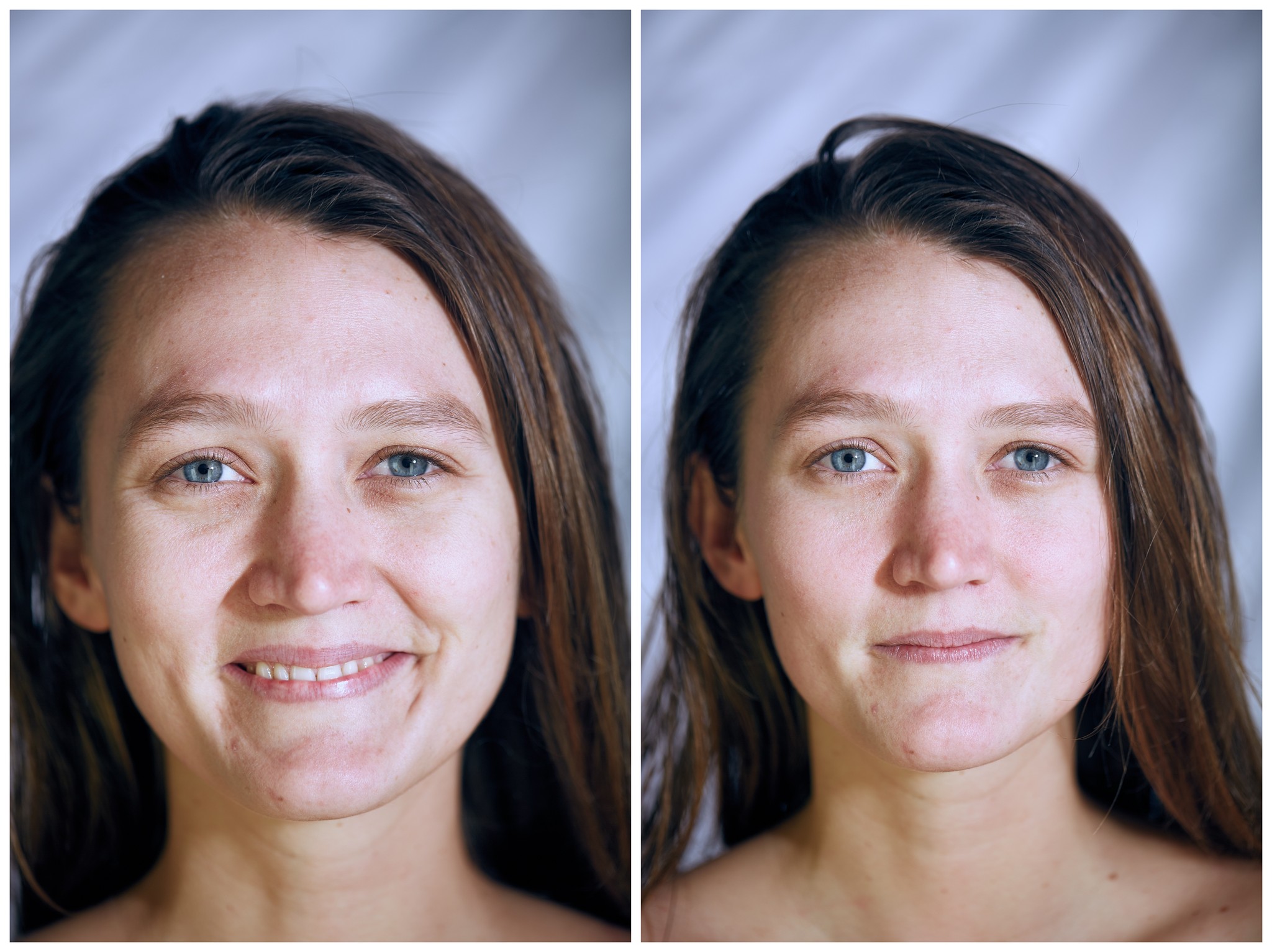 Hän otti ensimmäisen muotokuvansa ollessaan ehdokas pukeutunutja toinen, kun hän heitti pois vaatteensa. Sitten hän asetti valokuvat vierekkäin nähdäkseen, kuinka heidän ilmeensä muuttui. Katsokaa sarja muotokuvia ja näet itse sanattoman viestinnän voiman ja kuinka paljon me alitajuisesti petämme omallamme kehonkieli.