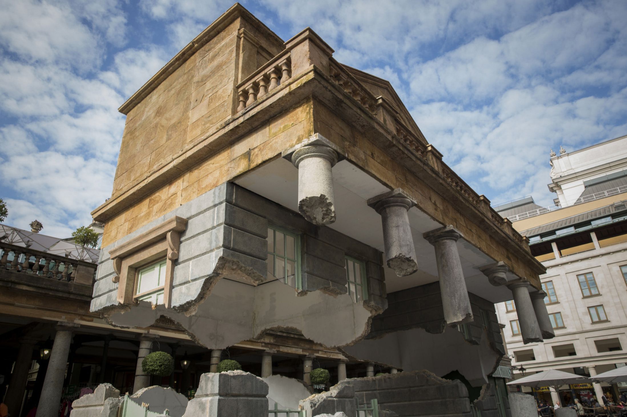 Kelluva rakennus on työtä yli 100 työntekijää taiteilija ja suunnittelija Alex Chinneck, joka teki kelluvan jäljennöksen 184 vuotta vanhasta kaupparakennuksesta valmistettu kevyestä polystyreenistä. Britti puuttui julkiseen tilaan uskomattoman tehokkaasti ja integroi taiteellisen illuusion täydellisesti kaupunkiympäristöön. 10 metriä korkea ja 12 metriä leveä kelluva rakennus on siis tyylikkäästi soluttautunut kuuluisan Lontoon aukion ilmeeseen, ja ohikulkijat voivat kävellä vapaasti kelluvan rakennuksen alla (tottakai kaikki ovat innoissaan, koska arkkitehtoninen rakennus ei paljasta yhtäkään tukea, mikä saattaa saada rakennuksen kellumaan ilmassa).