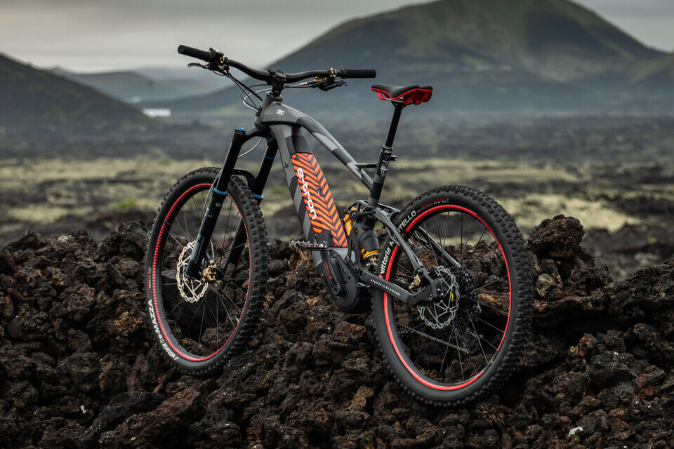 Audi RS Q e-tron Dakar sähköinen maastopyörä ei ole vain suorituskykyinen sähköpyörä, vaan myös visuaalisesti hämmästyttävä. Pyörän tyylikäs, aerodynaaminen muotoilu on saanut inspiraationsa off-road Audi RS Q e-tronista, ja sen eloisa oranssi ja musta värimaailma erottaa sen joukosta.