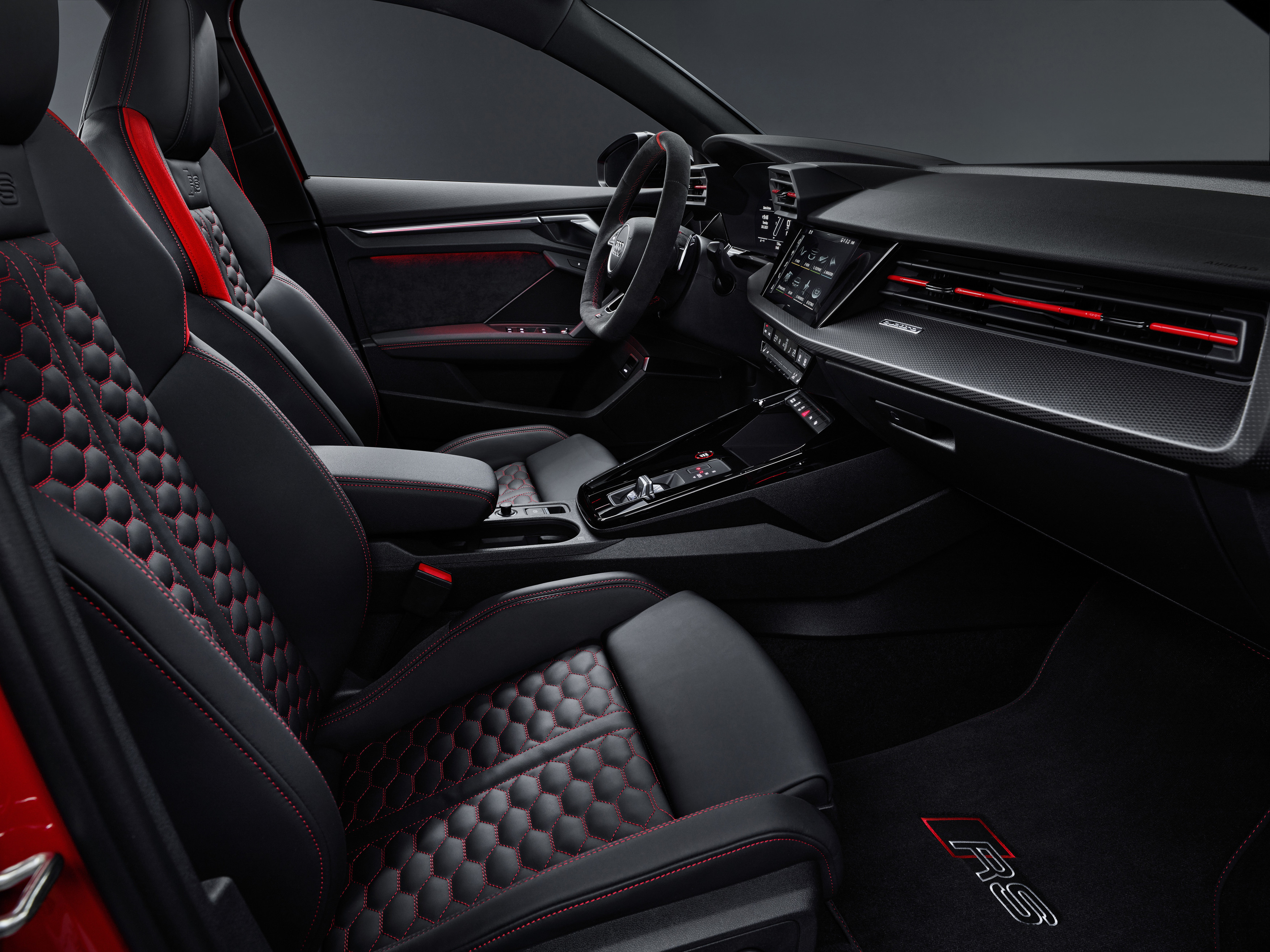 Tako kot daljni in v tem trenutku še aktualni predhodnik, ima tudi novi Audi RS3 turbinski vrstni 5-valjni motor. Novinec se prav tako ponaša s štirikolesnim pogonom, vektorsko razporeditvijo navora in bo na voljo v limuzinski in tako imenovani Sportback različici. Dizajn novinca je še aggressiivisempi, zaradi katerega ga boste brez težav ločili do preostalih Audijevih modelov. Le to se pozna tudi v notranjosti, kjer imamo na voljo kontrastne kombinacije med rdečo, zeleno in črno barvo. Voznik ima na voljo Audijev virtualni kopit v velikosti 12,3 tuumaa ja 10,1 tuumaa info-telematski zaslon na dotik. Na voljo je projecirni zaslon, vstavki v notranjosti iz karbonski vlaken, pa so pri modelu RS3 že del standardne opreme.