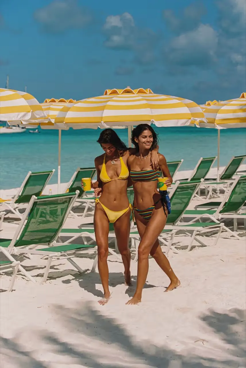 KOLMIO, Tämä pieni bikini-imperiumi, joka hemmottelee meitä säännöllisesti mikromalleilla ja mahtipontisilla kampanjoilla, kutsuu meidät uusimpaan paratiisiinsa: TRIANGL Coconut Club 2025. Bahaman hiekkarannoilla (kyllä, postikorttirannoista!) kuvattu uusi mallisto tuo mukanaan virkistävän väripaletin, joka tuo mieleen Yhdysvaltain lipun. Bahama ja siellä sijaitsevan ikonisen Coconut Clubin tunnelma.