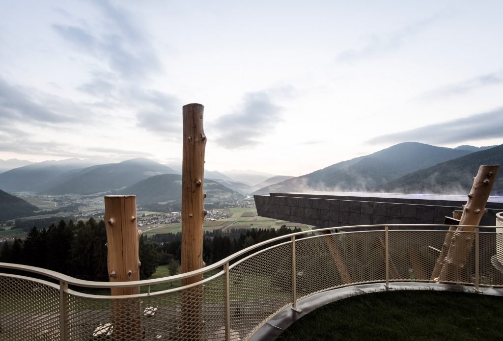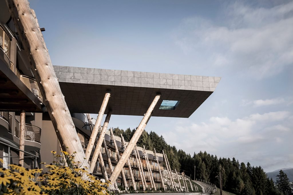 Arkkitehtistudio NOAH on varten hotel Hubertus v italijanskem Kronplatzu, ki velja za priljubljeno pribežališče smučarjev in pohodnikov, izdelal previsno ploščad z zunanjim bazenom, ki ponuja prečudovit razgled na Dolomite. Kot da to ne bi bilo dovolj, ima 25-metrski bazen delno lasipohja, kjer med plavanjem dobite občutek, da lebdite v zraku.