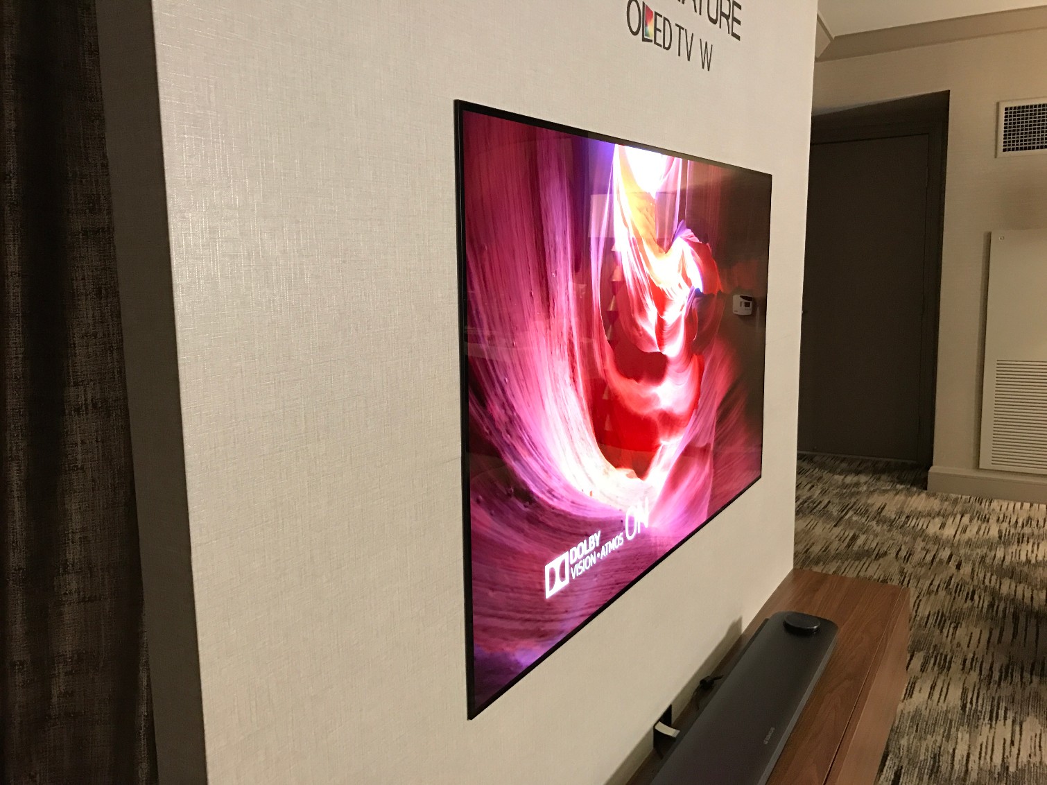 LG esitteli naurettavan ohuen LG Signature OLED W 4K HDR -television CES 2017 -messuilla. Paperiohut televisio on vain 2,57 millimetriä paksua, mikä on vähemmän kuin sormen paksuus! Se on niin ohut, ettei se oikein toimi seinällä. 65-tuumainen televisio painaa vain 7,3 kiloa, ja tulevaisuudessa on saatavilla myös 77-tuumainen versio.