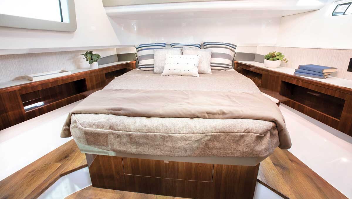Kun astut sisään Cruisers Yachts 50 GLS, sinusta tuntuu kuin olisit astunut ylellisyyden ja eleganssin maailmaan. Sisustus on kuin kelluva viiden tähden hotelli. Jokainen nurkka on huolellisesti suunniteltu tarjoamaan maksimaalista mukavuutta ja toimivuutta. Tilava oleskelutila, jossa on pehmeät nahkaistuimet ja nykyaikaiset aksentit, sopii täydellisesti rennon illan viettoon hyvässä seurassa. Salon keskellä on suuri ultra HD-televisio, joka on täysin integroitu premium-äänijärjestelmään, mikä mahdollistaa elokuvallisen kokemuksen keskellä merta. Uusimmalla tekniikalla, mukaan lukien induktioliesi, moderni jääkaappi ja edistyksellinen kahvinkeitin, keittiössä on kaikki mitä tarvitset gourmet-aterioiden valmistamiseen. Makuuhuone, jossa leveä sänky, ylelliset vuodevaatteet ja sisäänrakennettu televisio, lupaa rauhallisia öitä, kun taas aaltojen lempeä keinuminen kuljettaa sinut unelmien maailmaan. Jokainen yksityiskohta valaistuksesta materiaalien valintaan on suunniteltu luomaan ylellisen ja kodikkaan tunnelman, jota on vaikea löytää muualta.
