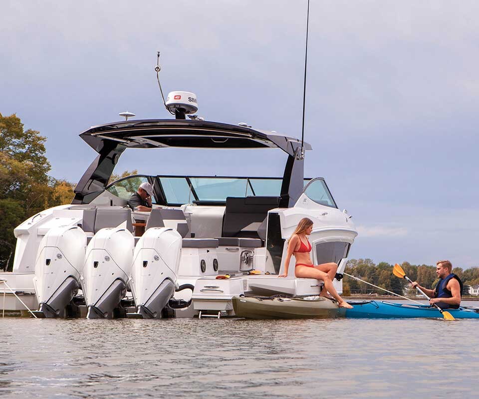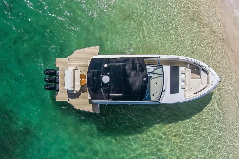 Cruisers Yachts 50 GLS se ei ole vain tavallinen jahti. Se on jahti, joka on kuin urheiluauto vesille. GLS tarkoittaa itse asiassa (Grand Luxury Sport, jos unohdit). Kolme 600 hevosvoiman Mercury Verado V-12 -moottoria saavat sinut tuntemaan olosi raketissa, ei jahdissa. Ja kun painat kaasua, se työntää sinut kirjaimellisesti takaisin mukavalle ohjaajan istuimelle. Tämä jahti lentää lähes 100 km/h eli jopa 49,6 solmua