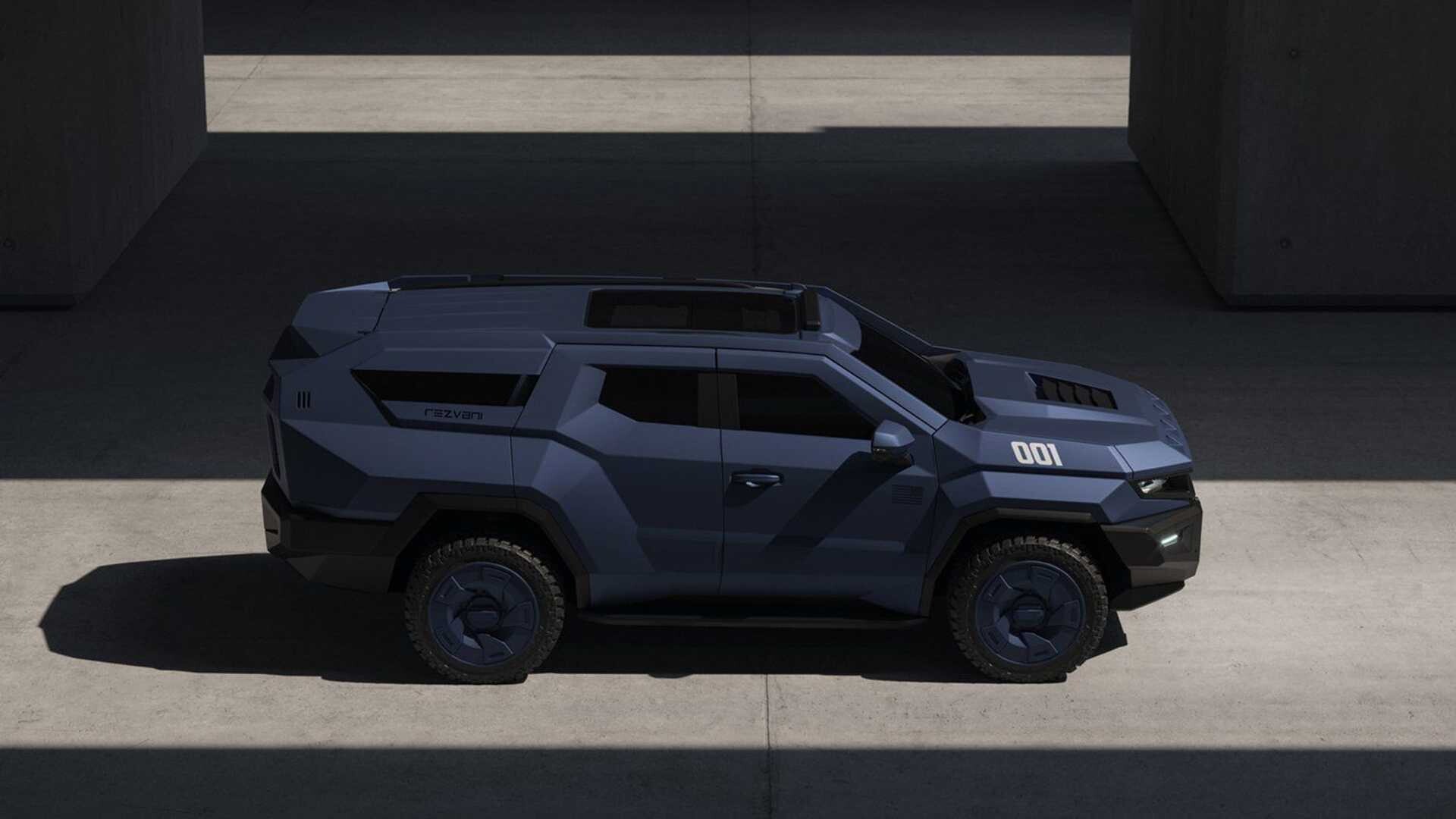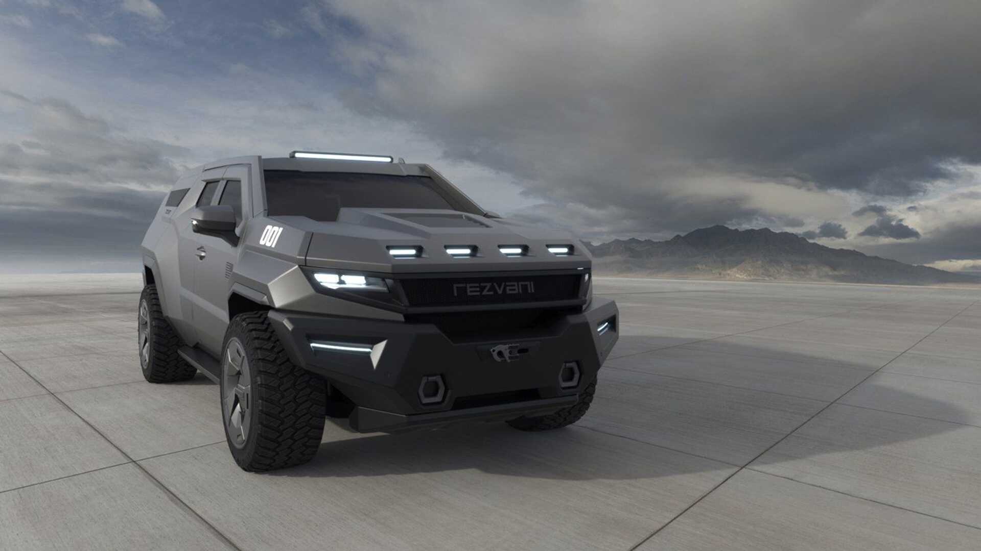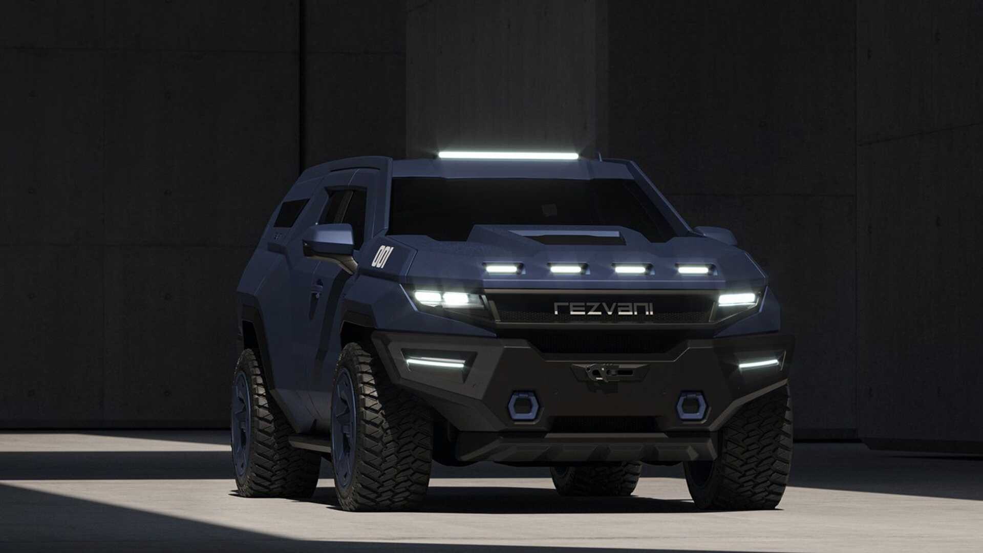 Rezvani Vengeance on karu, hieman villi maastoauto, joka suojaa matkustajia piparminttuvastaanotolla, luodinkestävällä lasilla, vartalosuojalla, sähkökäyttöisillä ovenkahvoilla ja suojanaamareilla.