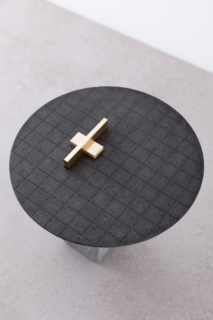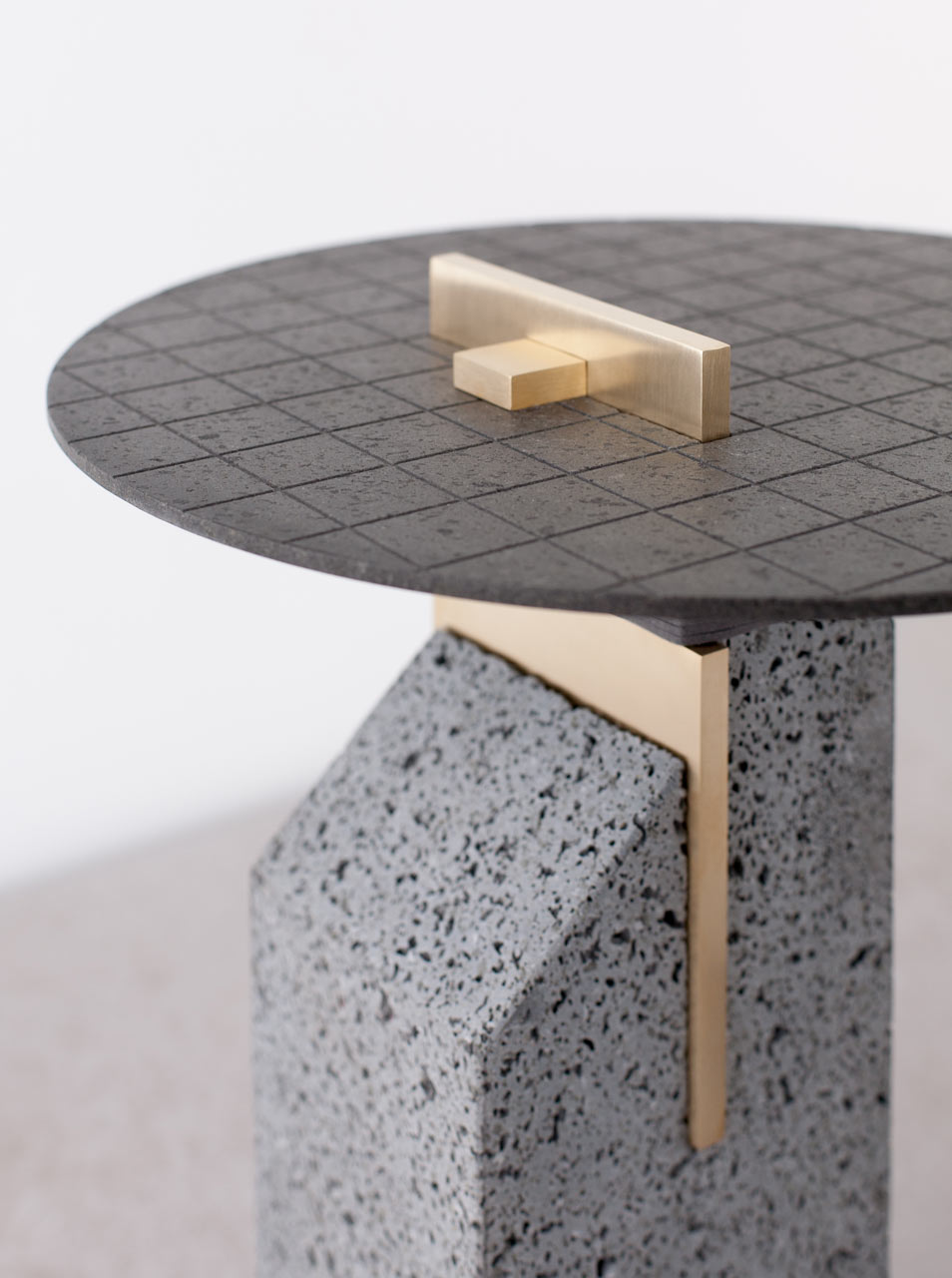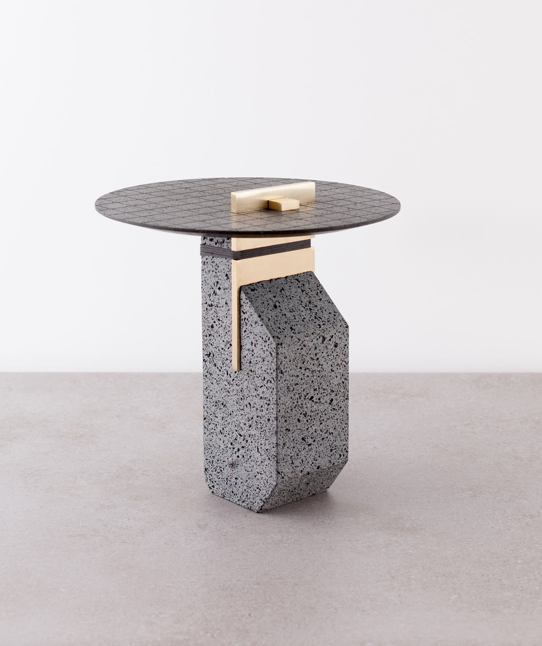 Studio käytti basaltti, magmakivi, joka muodostuu, kun basalttilaava jäähtyy nopeasti. Heidän sarjaansa kuuluu mm. laava, taudinpurkauksen seurauksena Etna-tulivuorelta Sisiliassa 20. marraskuuta 2013. Laava jätti jälkeensä pintoja, jotka oli peitetty mustilla savimateriaaleilla, joita taitavasti levitettiin studiossa Formafantasma ja veistettyjä geometrisia huonekaluja. He lisäsivät myös messinkielementit ja niin he tekivät pöytiä ja tuoleja, joille he antoivat nimen De Natura Fossilium.
