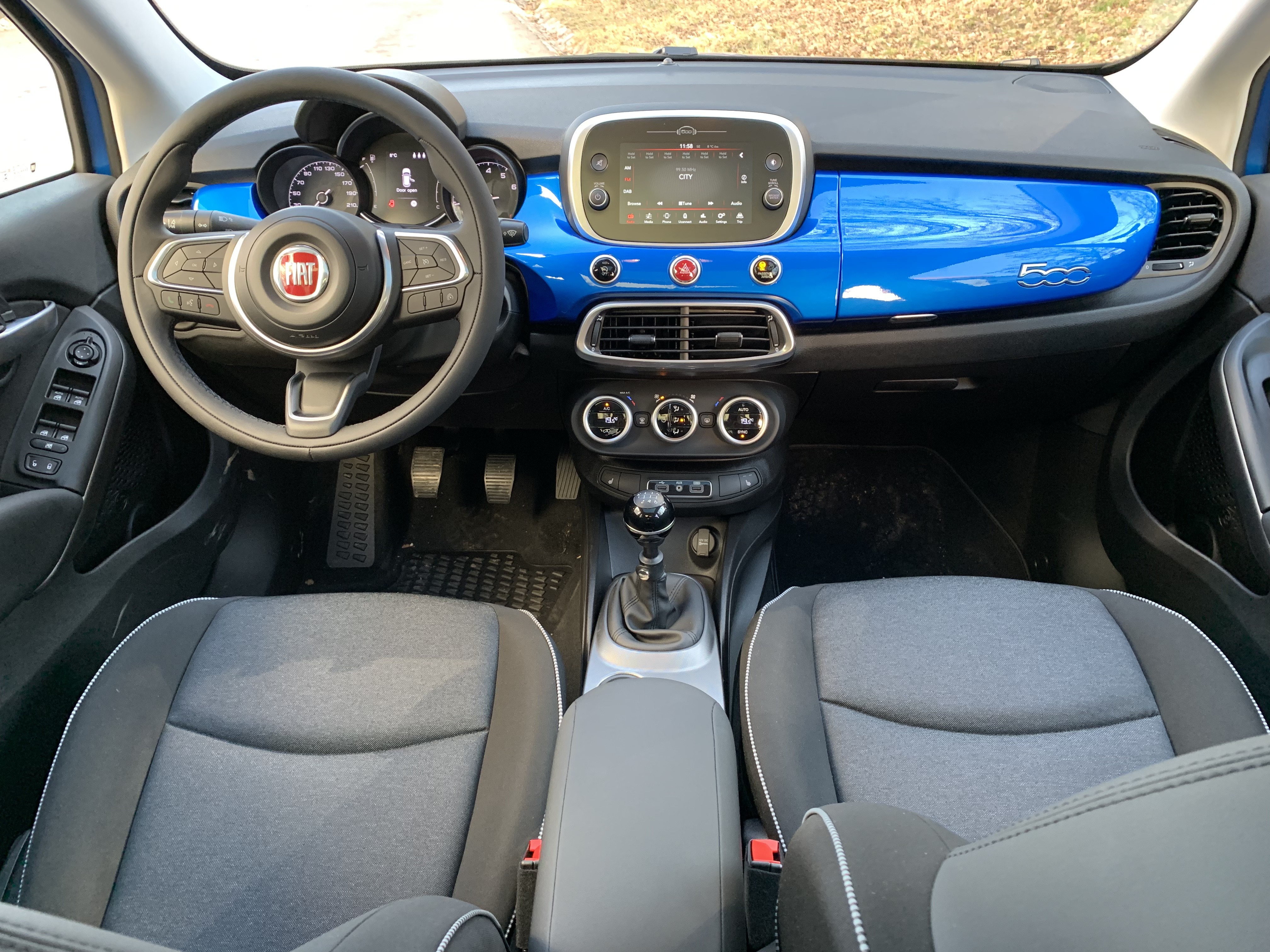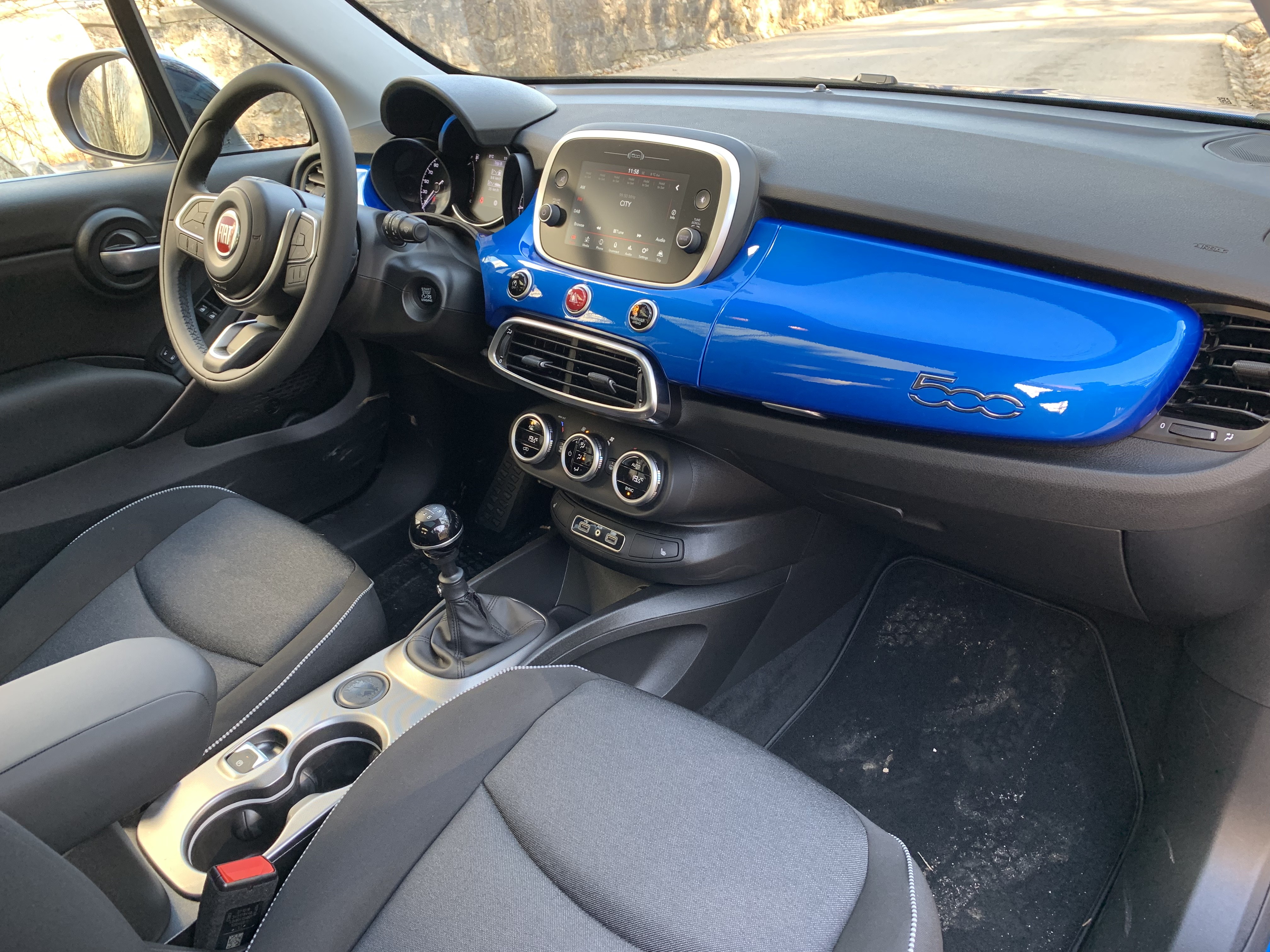 Sisustus on tilava, ja verhoilua on valittavissa tavaroita, nahka tai molempien yhdistelmä. Koska yhteys maailmaan on nykyään yhä tärkeämpää, Fiat 500X myös tällä alueella ei kaukana jäljessä. Se on saatavana vakiona puhelimen peilaus ja sovellus Katkaise yhteys livenä, joka tarjoaa tilatietoja ajoneuvoa, sen sijaintia ja järjestää hätäpuhelun onnettomuuden sattuessa.