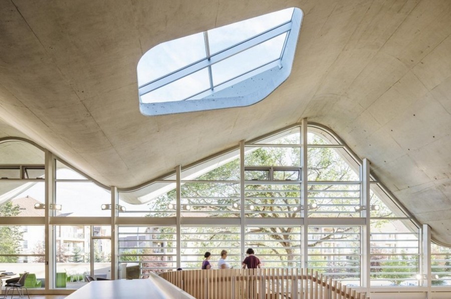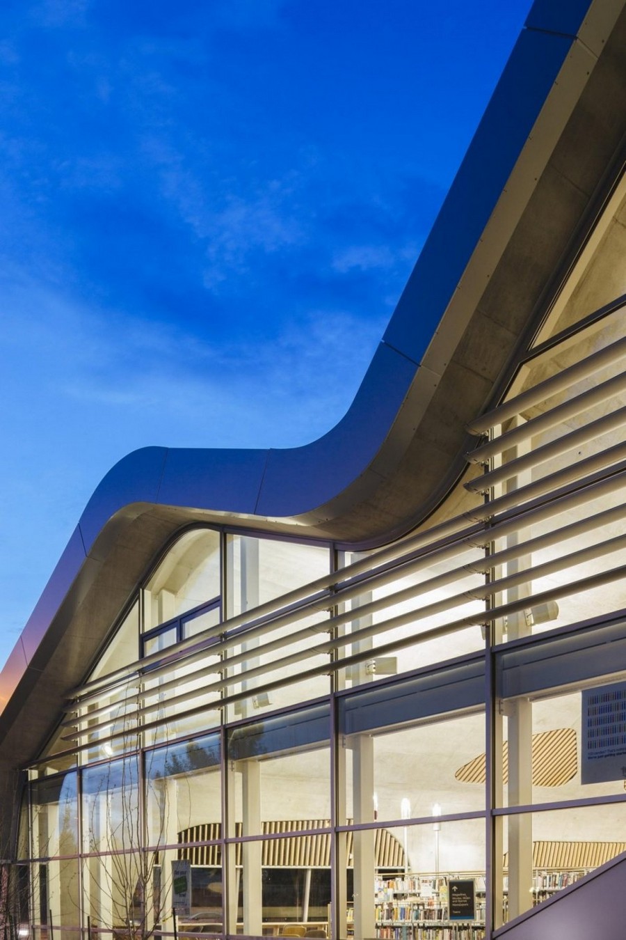 Na lokaciji prejšnje, manjše knjižnice, je nastala novejša, večja in modernejša. Zaradi družbene povezljivosti so ustvarili zgolj en prostor, ki pa se navezuje tudi v drugo nadstropje. Celoten objekt je pokrit z valovito unikatno streho, medtem ko je zunanja stena steklena.