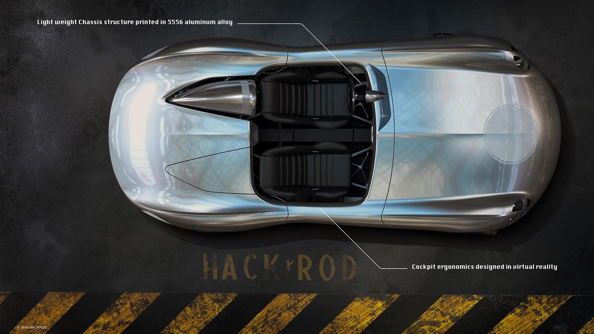 Hackrod 'La Bandita' on maailman ensimmäinen virtuaalitodellisuusympäristössä kehitetty auto, joka on jalostettu tekoälyn avulla ja luotu 3D-tulostuksen avulla.