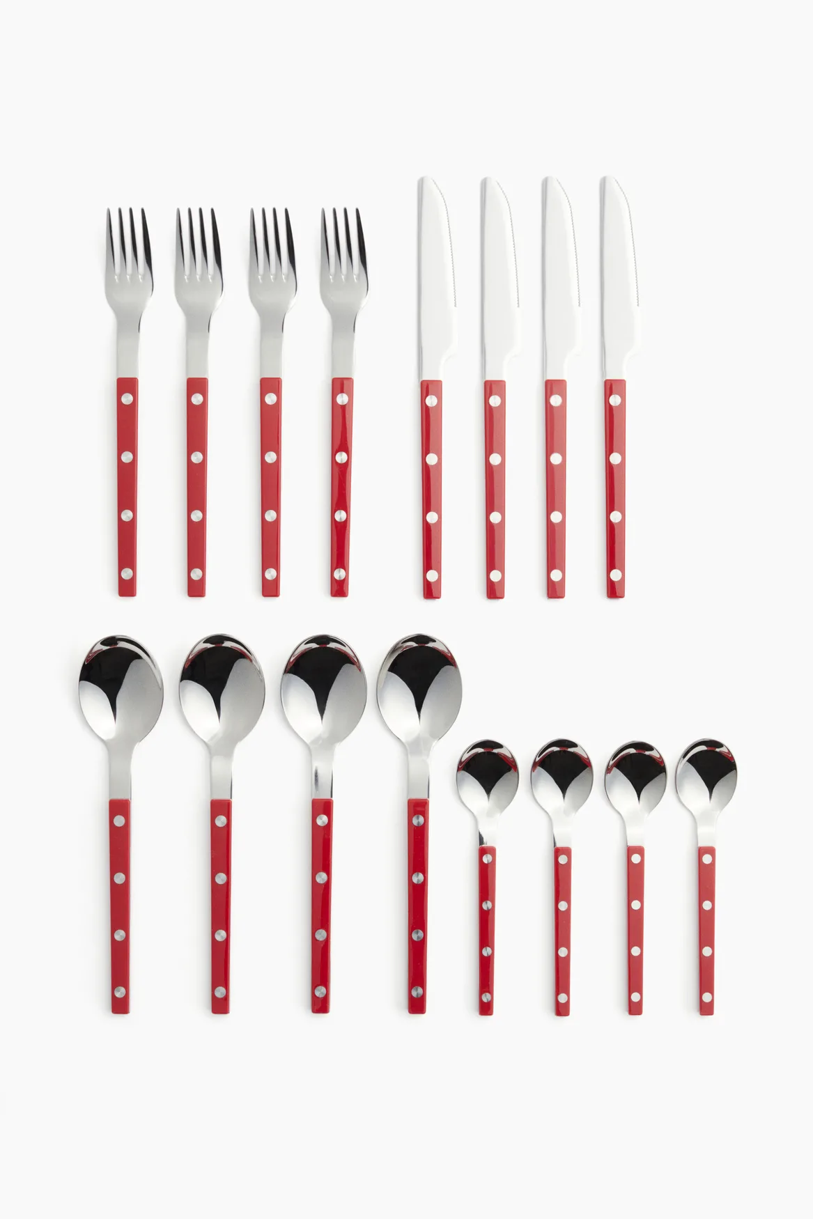 Punareunaiset posliiniastiat hallitsevat pöytää – lautasista kulhoihin, kaikkiin herkillä juhla-aiheisilla iskulauseilla. Kynttilät palavat tulppaaninmuotoisissa kromisissa ja messingistä valmistetuissa kynttilänjaloissa – kolmessa koossa ja dramaattisella kyntteliköllä, joka saattaa jopa tehdä näyttävän vaikutuksen kokkisi pöytäkattauksessa.