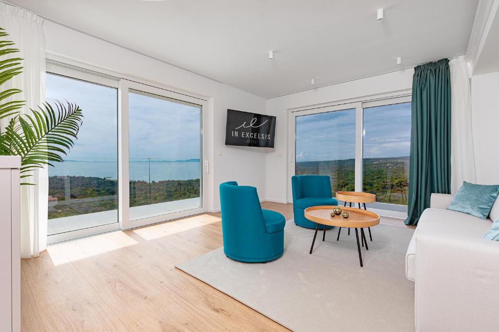 Hotel In Excelsis sijaitsee kuuluisan turkoosinsinisen Baben lahden yläpuolella Novaljalla, pienellä kukkulalla, josta on täydellinen näkymä kaikista huoneista!