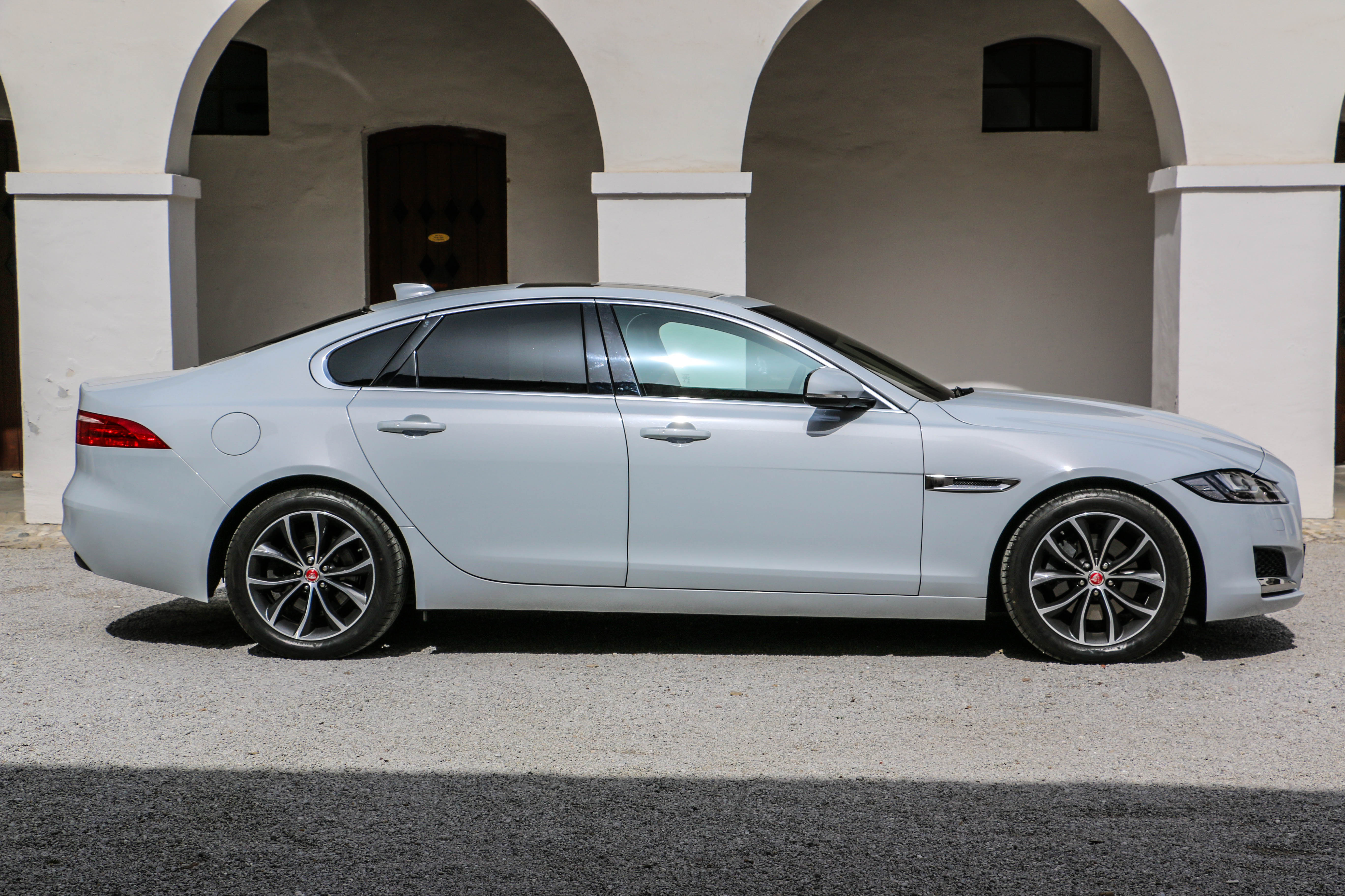 Jaguar XF je skoraj 5 metrov dolga limuzina, izstopajoča z dolgim motornim pokrovom, ki ga dopolnjuje skoraj kupejevska silhueta. Tudi zaradi “kupejevske” oblike in širokega koloteka avtomobil deluje izjemno športno. In nekje med to športnostjo in množico detajlov tako zunaj avtomobila kot v njem se skriva pravi britanski šarm.