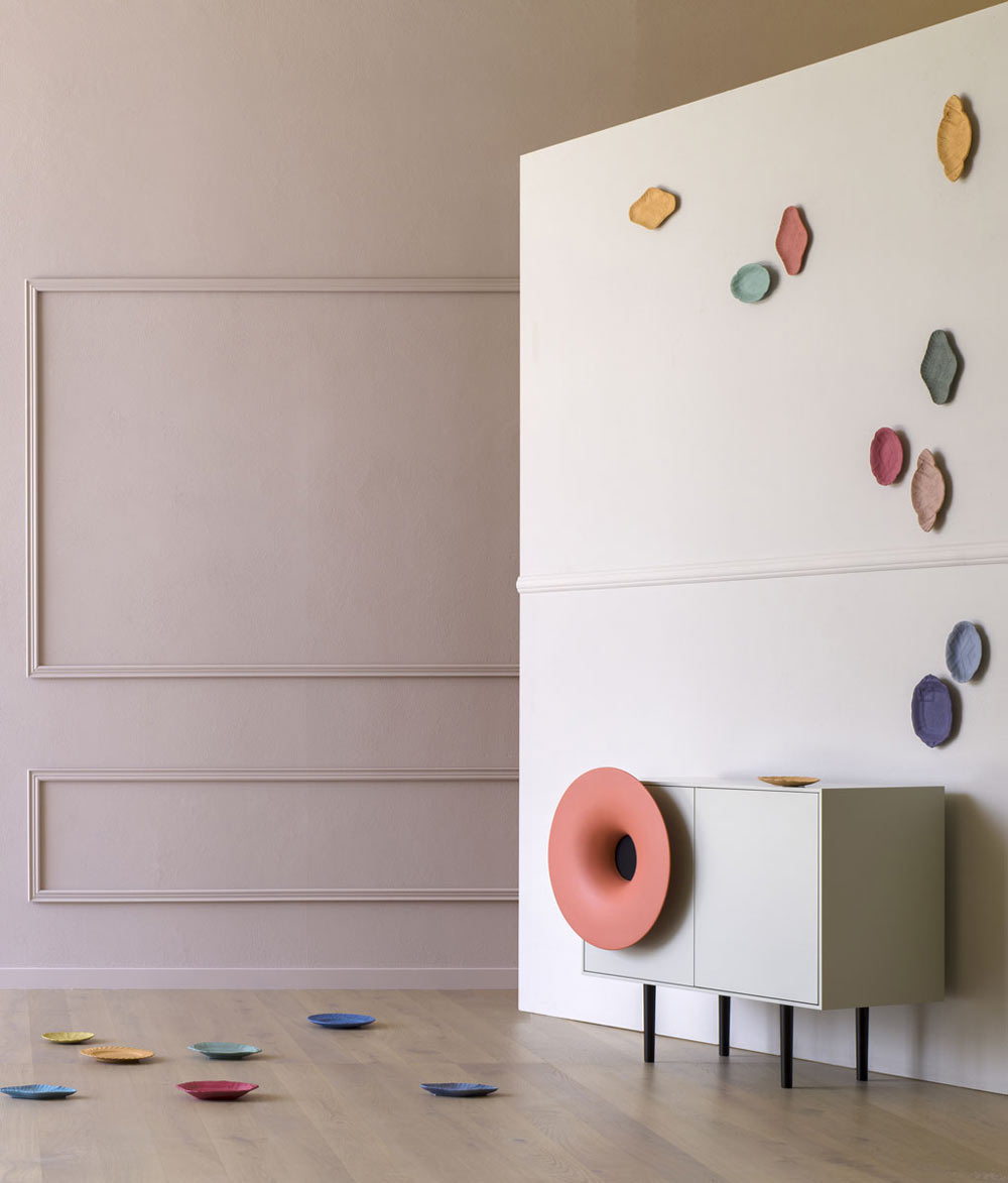 Kabinetne omarice z barvitimi Bluetooth zvočniki Caruso so vsekakor nekaj posebnega. Z zvočniki, oblikovanimi v obliki trobente, nas spomnijo na retro gramofone in presenetijo z dejstvom, da delujejo na najsodobnejši način, namenjen uporabi v digitalni dobi – prek Bluetootha.