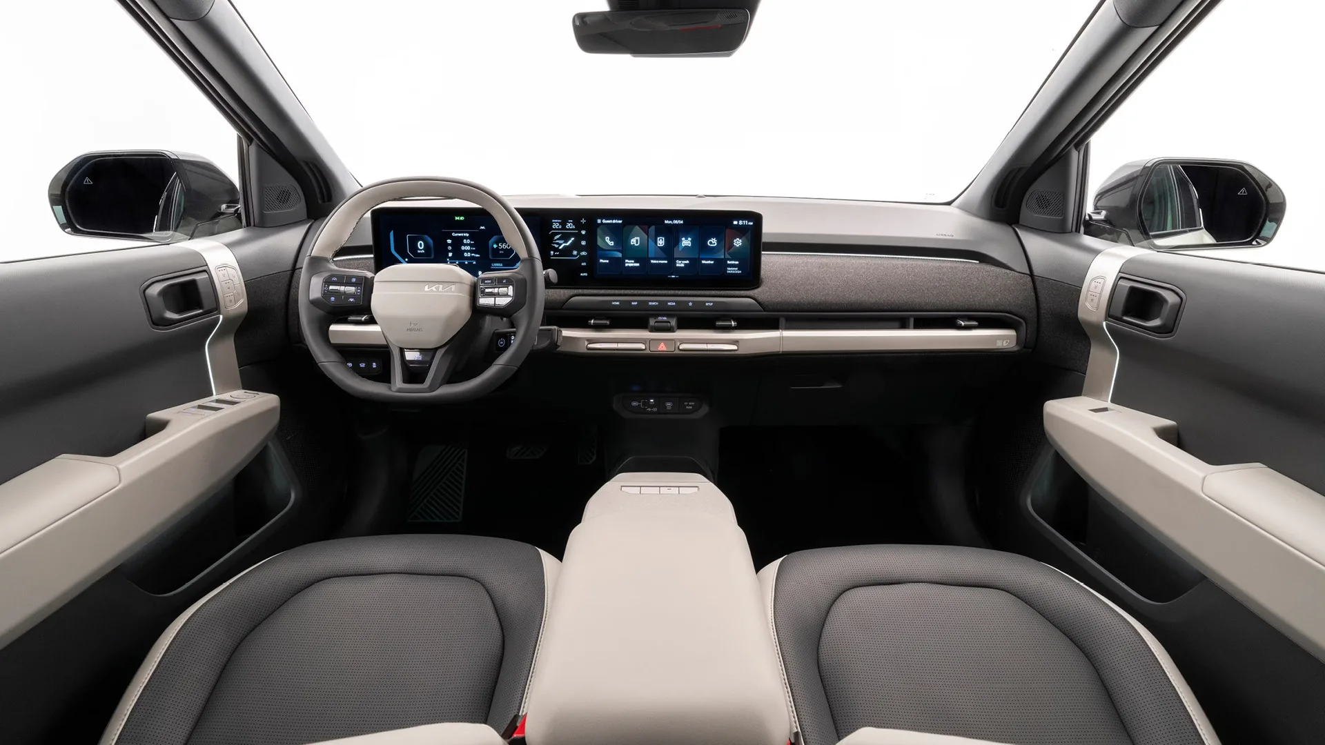 KIA EV3 430 cm:n (169,3 tuuman) pituudellaan se on hieman lyhyempi kuin KIA Seltos, mikä tarkoittaa, että se tarjoaa kompaktin koon, joka on ihanteellinen kaupunkiajoon. Pienestä koostaan huolimatta EV3 tarjoaa tilavan sisustuksen kahdella 31,2 cm:n (12,3 tuuman) näytöllä ja valinnaisen head-up-näytön.