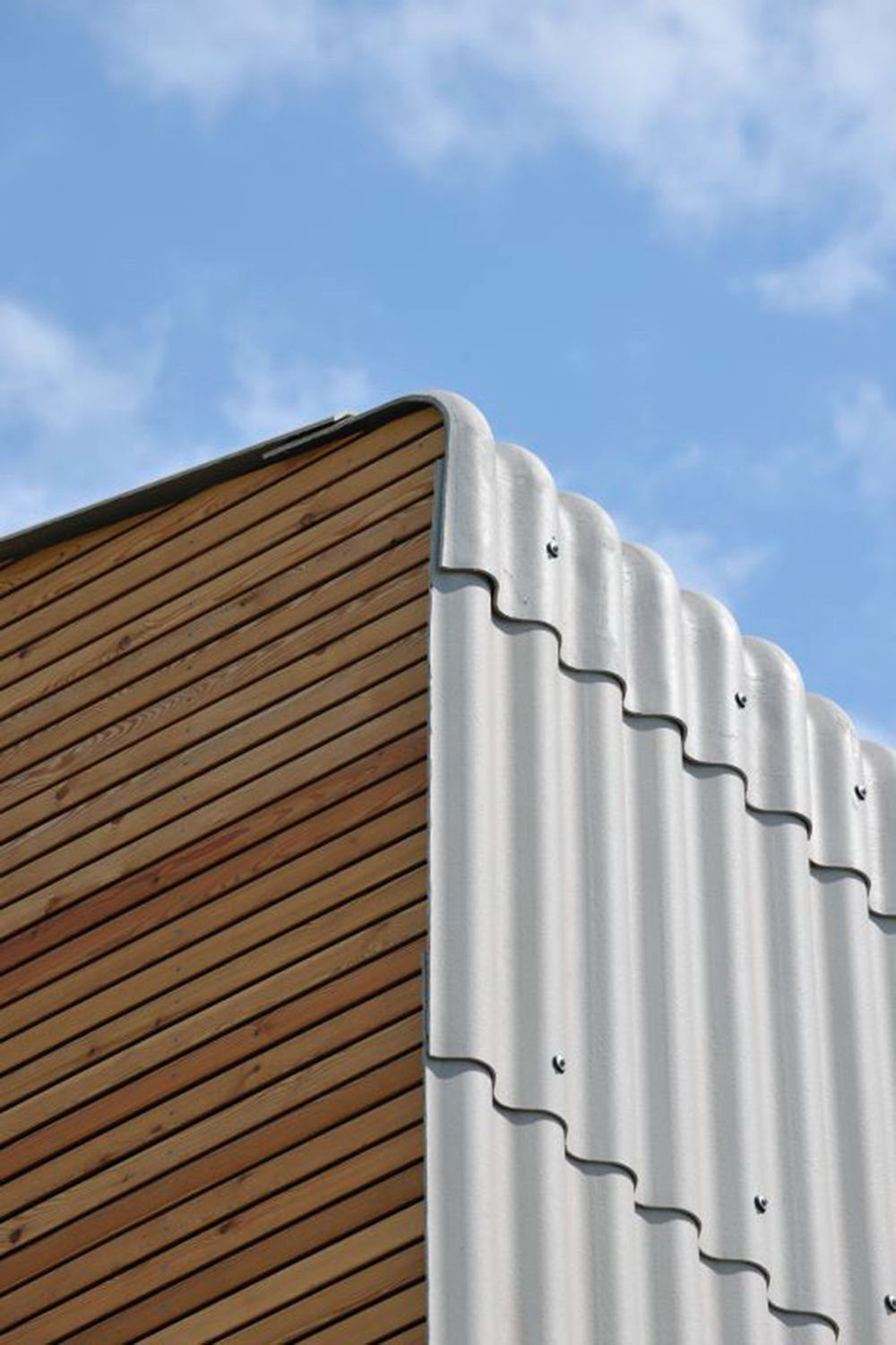 Zasebnost prostorov stavbe se stopnjuje z nadstropji; v kleti se nahajata očetova pisarna in otroška igralnica, pritličje je namenjeno bivalnim prostorom, nadstropje pa spalnicam. Konstrukcijsko je zgradba zasnovana v kombinaciji armiranega betona in lesa. Odločitvi za izvedbo lesene konstrukcije je poleg hitrosti in enostavnosti gradnje botrovala tudi težnja po trajnostni gradnji. Kot vemo, je Slovenija izredno bogata z lesom, hkrati pa je bivanje v leseni zgradbi izredno prijetno. Severna in južna fasada sta odeti v lesen opaž in se z velikimi okni odpirata proti čudoviti pokrajini. Nasprotno pa sta vzhodna in zahodna fasada zaradi bližine sosednjih stavb kolikor je mogoče zaprti in prekriti z valovitimi cementnimi ploščami, s katerimi je prekrita tudi streha.