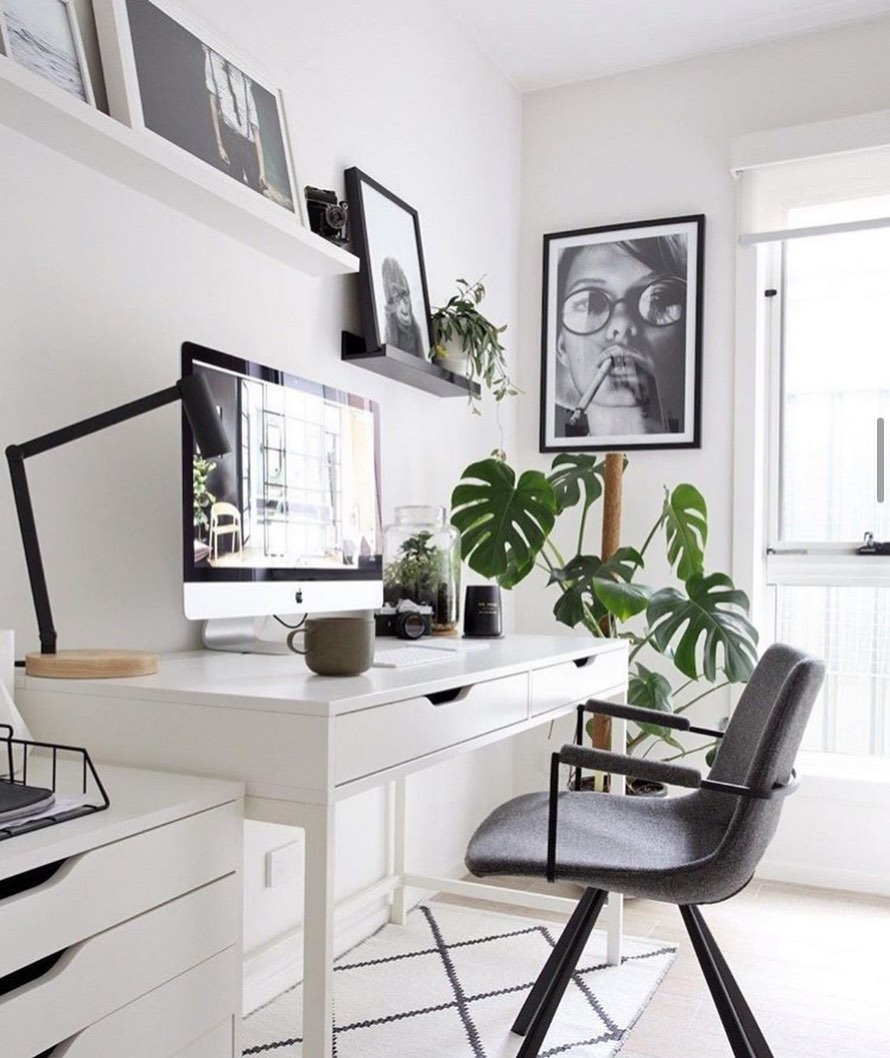 Kuten olemme jo kirjoittaneet, älä liioittele koristeiden kanssa, joka voi nopeasti häiritä huomiosi. Jos tiedät, että jälkimmäinen voi olla inspiraation lähde, aseta ne harkiten seinälle (ei pöydälle), mutta älä liioittele sitä. Anna seinäkoristelun olla sellainen palapelin ratkaiseminen – Aloita muutamalla kappaleella ja lisää muutama pala joka kerta, kun löydät uutta inspiraatiota. Muuten on suositeltavaa sijoittaa makusi asusteiden lisäksi myös joitain kasvi, koska se elvyttää hänet.