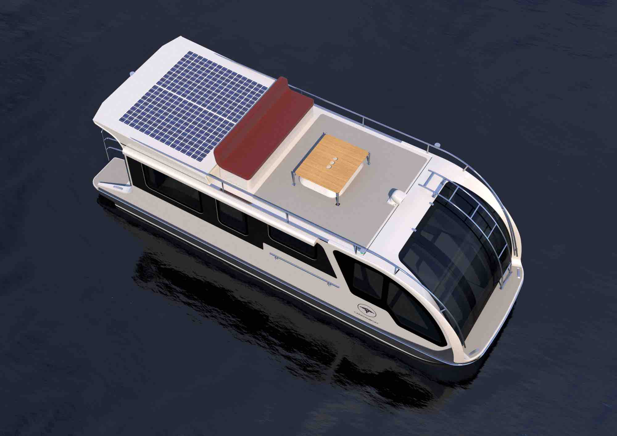 Asennamme sen perävaunun takaosaan moottori ja me hallitsemme sitä sen kautta ohjauspyörä, joka sijaitsee etuosassa. Sinne on asennettu paljon panoraamaikkunaparemman näkyvyyden ja helpomman liikkumisen takaamiseksi vedessä. Meillä on käytössäsi hyvin hoidettu kattoterassi. aurinkoterassi tuoleilla tai lepotuoleilla, ja siellä on myös aurinkokennot puhtaan sähkön tuottamiseen. Departure One on saatavilla useissa eri väreissä ja hinnoissa alkaen 58 000 euroa ja hintaan on vielä lisättävä vero. Asuntovaunun ja veneen yhdistämisen periaate ei ole uusi käsite, sillä olemme jo nähneet jotain vastaavaa 60-luvulla viime vuosisadan. Mutta ilmeisesti nyt on aika toteuttaa idea käytännössä. elvyttää. Ehkä tällä kertaa niitä on enemmän kuuntelee tällaiseen "tupla"lomaan.