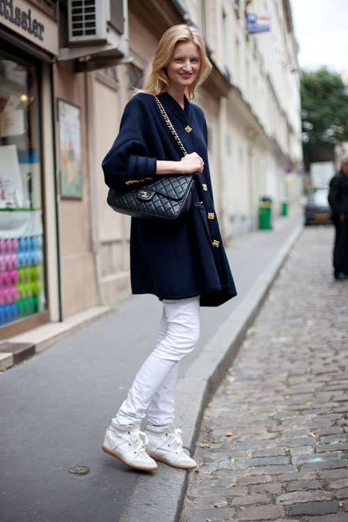 Iz globine svoje omare lahko vzamemo kar svoje stare in že rahlo zaprašene adidaske, converske oziroma retro startaske. Najbolje popolnoma bele, tu pa tam jih lahko popestri kakšna črtica v rdeči, modri ali zeleni barvi. Tudi z gumijastim, rahlo oranžnim podplatom bomo zadeli v polno. Bele retro superge bomo letošnjo pomlad nosili na bele elegantne kose, na vintage kavbojke z visokim pasom in ponovno modne hlače na rob.