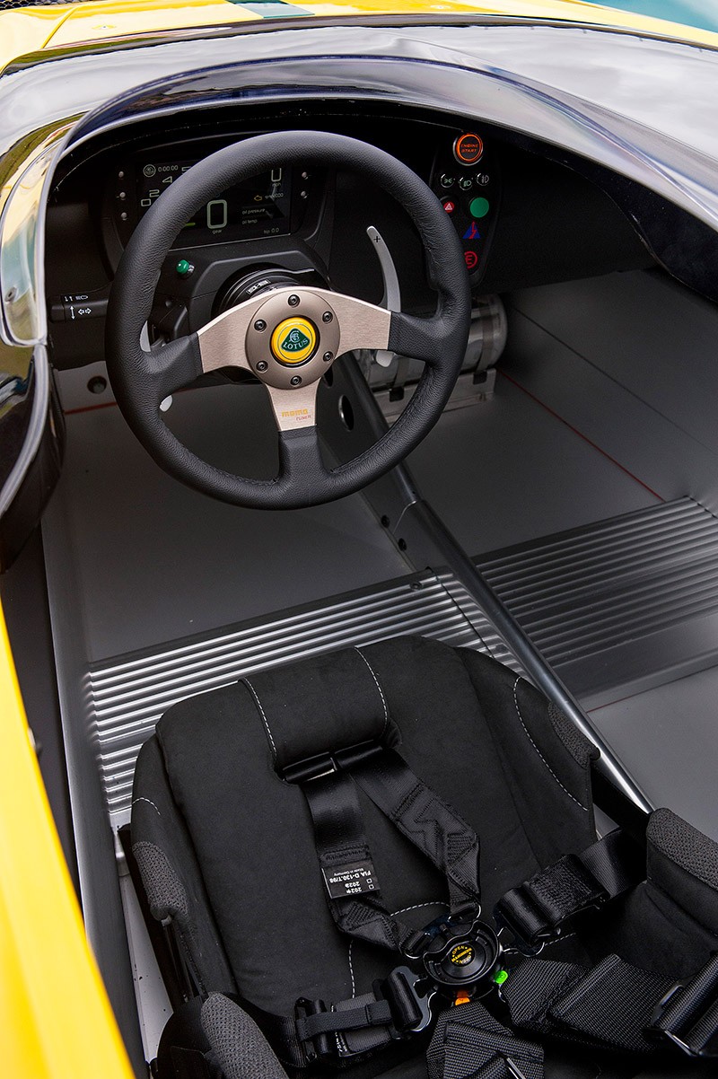 Lotus 3-Eleven perustuu malliin Exige, alumiinirungolla, komposiittimateriaaleista valmistetut höyhenpaneelit ja paino alle 900 kiloa (890 kg). Ei versiota kuten sanottu sillä ei ole kattoa, minkä vuoksi ne voivat ylpeillä monilla elementeillä, jotka parantavat pitoa tiellä. Ohlins iskunvaimentimet, säädettävä kallistuksenvakain edessä ja Eibach-siipijousitus, ja ne lisäävät myös oman 18 tuuman vanteet ja Michelin renkaat Super Sort or Cup 2. Sisätiloista ei tarvitse vähätellä sanoja, sillä tämä ei ole auto, joka asettaa mukavuuden etusijalle. Joten se on vain mainitsemisen arvoinen kolmipuolainen ohjauspyörä, näyttö syvällä kojelaudassa, jo mainitut urheiluistuimet ja palosammutin.