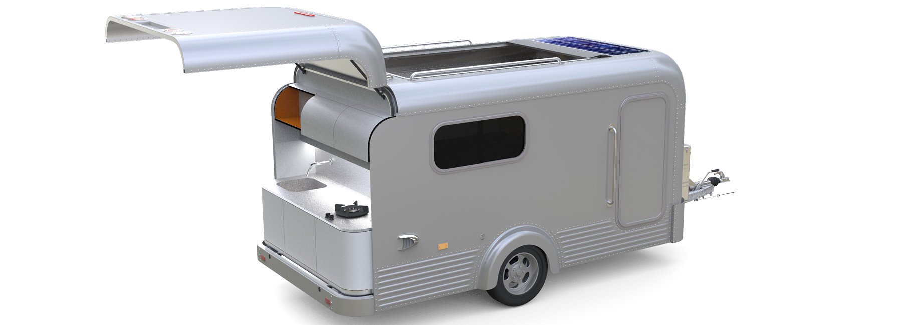 Počitniška prikolica LUME Traveler No.1 on lahko in močno konstrukcijo, zahvaljujoč aluminijasti ‘sendvič’ sestavi. Prikolica ima dovolj prostora za veliko posteljo in kuhinjo, sicer pa si lahko notranjost opremite tudi po lastnih željah. A bolj kot to je edinstvena in največja prednost prikolice LUME Traveler No.1 v panoramski strehi, ki jo lahko odpremo in spimo v ‘hotelu’ z milijoni zvezdic. Pri tem imamo na voljo še zaščito proti mrčesu in tako bodo noči lahko popolnoma brezskrbne in vas lahko zmoti le kakšna nenadna dežna ploha.