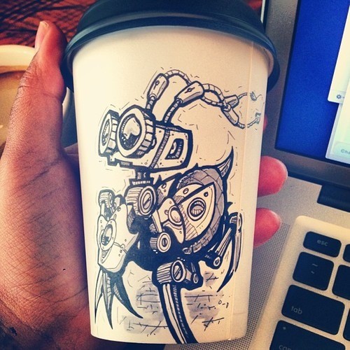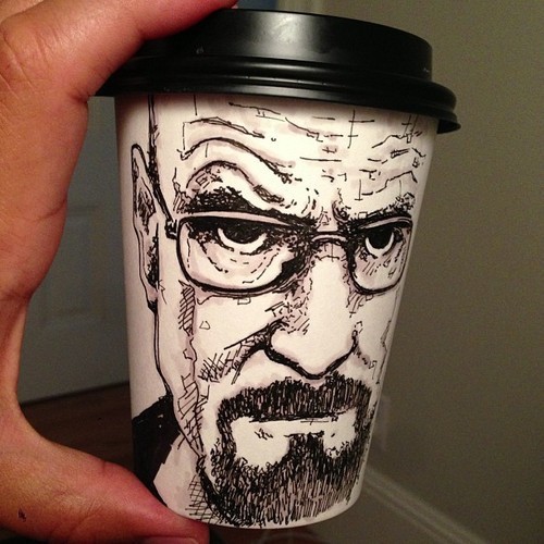 Kuvittaja ja graafinen suunnittelija paperilla kahvipannuja luo upeita piirroksia. Luettelo palveluista Cardona piirtää, on hyvin monipuolinen ja sisältää myös suosittuja TV-hahmoja, kuten Walter White Breaking Badista.