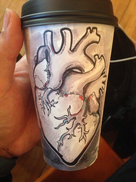 Jotkut taiteilijat piirtävät lautasliinoille, toiset luovat kankaille, ja Miguel Cardona valitsi paperiset kahvipannut.