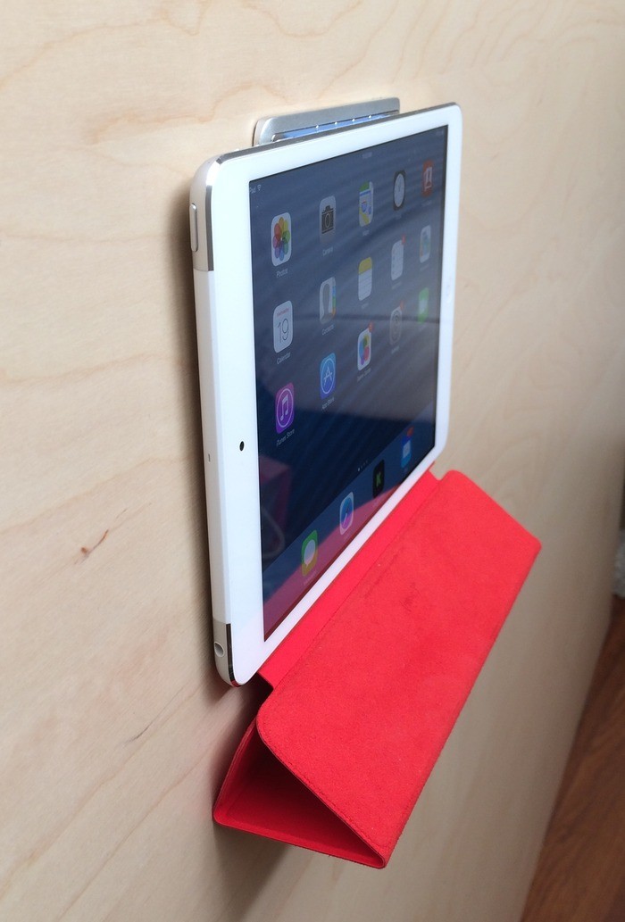 MagBak on pidike kahden muodossa magneettiset tarrat (saatavana useissa eri väreissä), jotka tarjoavat turvallisen otteen iPadista kuin hyvä ote tennismailasta. Mutta MagBakin rooli ei lopu tähän, magneettipidikkeenä yhdistettynä kahteen metalliset tikut mahdollistaa tabletin ripustaa seinälle kuvana, sisään seisomaan mutta voit myös vaihtaa minkä tahansa muun pinnan (pöytä, auton kojelauta jne.). Samalla se toimii suojakotelon kanssa "siili"-periaatteen mukaisesti, joten etukansi Se ei häiritse tanssimista käytön aikana.