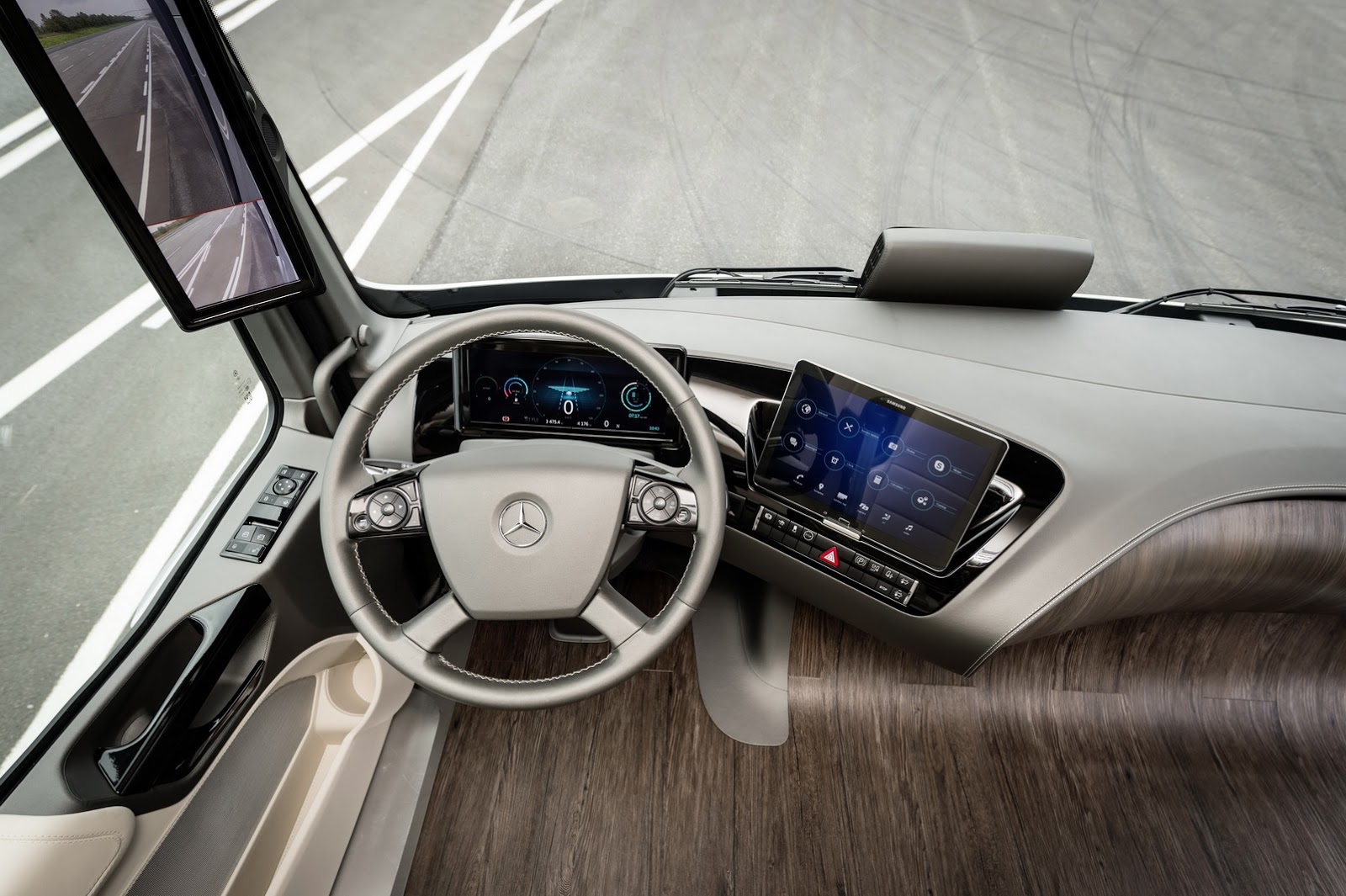 Poglavitna novost, ki jo future truck 2025 prinaša, pa je tehnologija zmožna povsem avtonomne vožnje, kjer pa je voznik še vedno v središču pozornosti, le da ga asistenčni sistemi lahko lyhyen aikaa povsem razbremenijo, da voznik recimo prebere elektronska sporočila izpisana na posebni prenosnem osrednjem zaslonu, ki je v bistvu Samsungova tablica, ali da pretegne noge v izredno prostorni in prečiščeni potniški kabini.